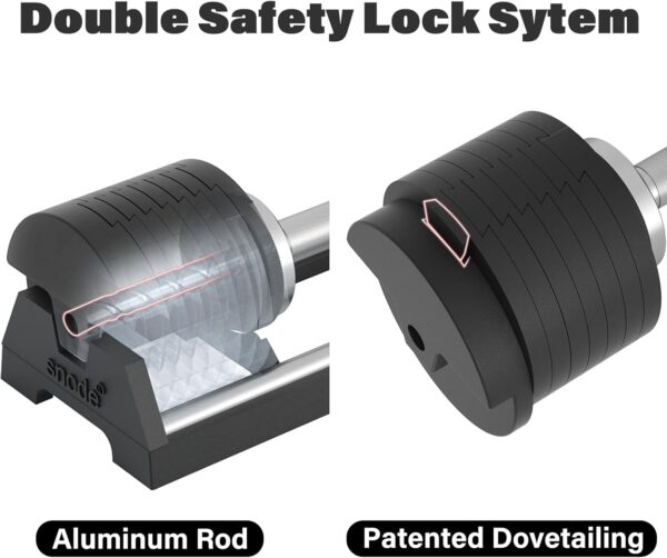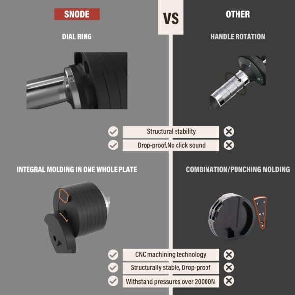 【Unique Structure】The grip and the first plate are integrated to ensure that the handle does not shake/rattle. How we make it drop-Proof: When dropping, the stress-bearing is always on the first plate which we already make it really durable. Also the dual design of the telescopic rod and dovetail groove ensures the plates won’t fall off during workout.