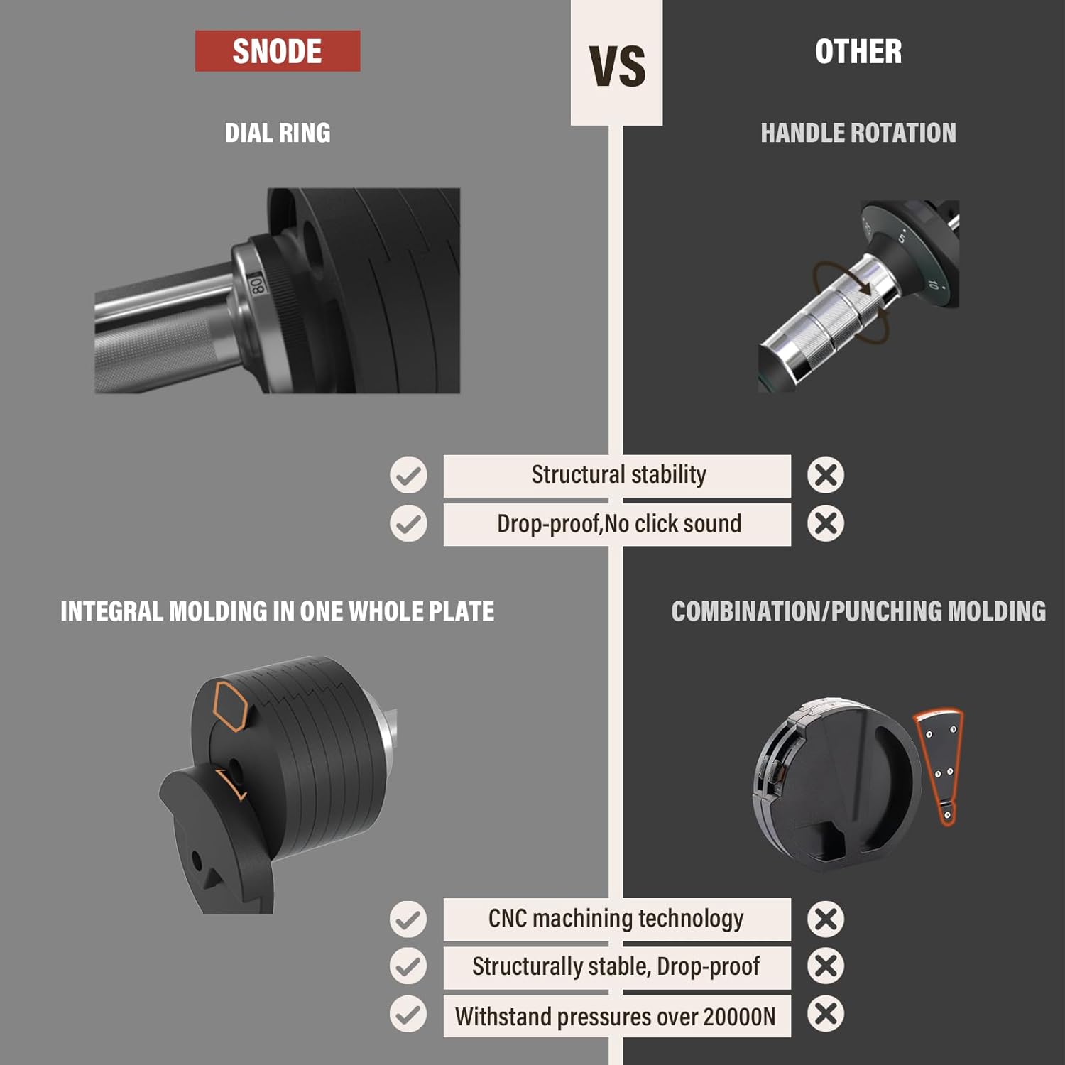 【To Our Customers】Please follow the user manual and install the dumbbell plates as order. The brand new product has 1 year FREE replacement parts! Please mail our after sale email if any issue! SNODE makes sure the guarantee for customer service!
