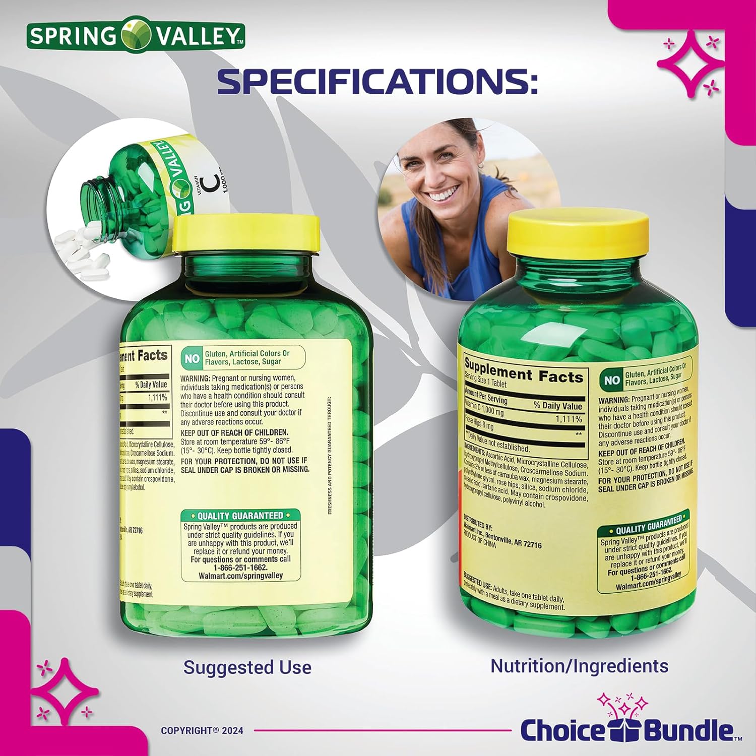 Be the first to review “Spring Valley Vitamin C with Rose HIPS Tablets Dietary Supplement 1,000 mg, 250 ct Choice Bundle + Vitamin Vitality Guide & Portable Pill Container (3 Items)!”