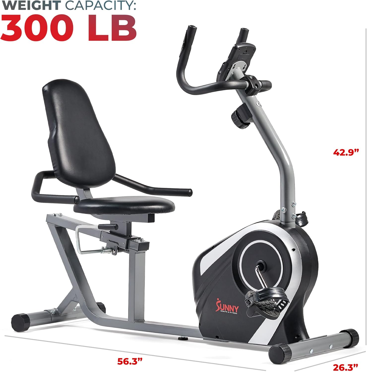 Experience ultimate joint-friendly fitness with our heavy-duty recumbent bike, offering a low-impact workout that reduces joint stress and supports your back. Ideal for rehab, cardiovascular health, and muscle toning, it’s perfect for all exercise needs. Enhance your fitness journey with the FREE SunnyFit App, connecting seamlessly to our elliptical cross trainer. Access over 1,000 workouts and 10,000 global routes, customizing your workouts on the go. Enjoy a quiet, smooth ride with 8 levels of magnetic tension and a belt drive mechanism. Comfort features include an extra-wide cushioned seat, adjustable foot stabilizers, and transport wheels for easy movement. With a 300 LB weight capacity, integrated device and cup holder, and anti-slip foot straps, our equipment ensures focused, effective workouts. Monitor your progress with comprehensive dashboard metrics and heart rate feedback. Easy assembly and excellent customer service reflect over 20 years of Sunny Health & Fitness expertise. Achieve your fitness goals with our top-notch equipment and support.