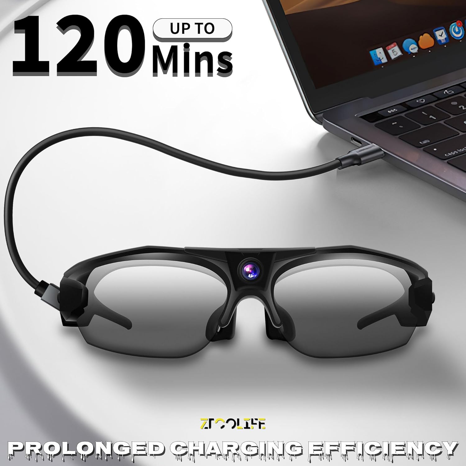 Large Battery Capacity: Equipped with a 650mAh high-capacity battery, these glasses camera can be fully charged in approximately 100 minutes. Enjoy up to 120 minutes of continuous video time or 360 minutes of standby time, ensuring you have ample power for your using needs.