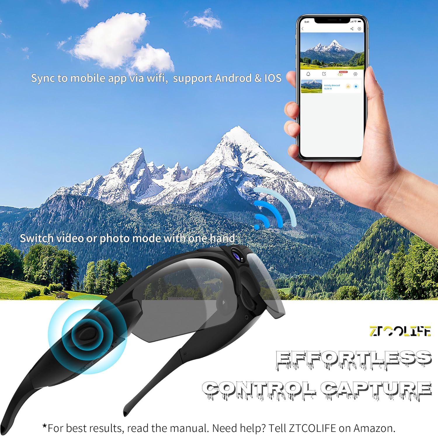 Elevate your outdoor experiences with the ZTCOLIFE Smart Sunglasses with Camera. Capture, share, and relive your adventures in the highest quality!