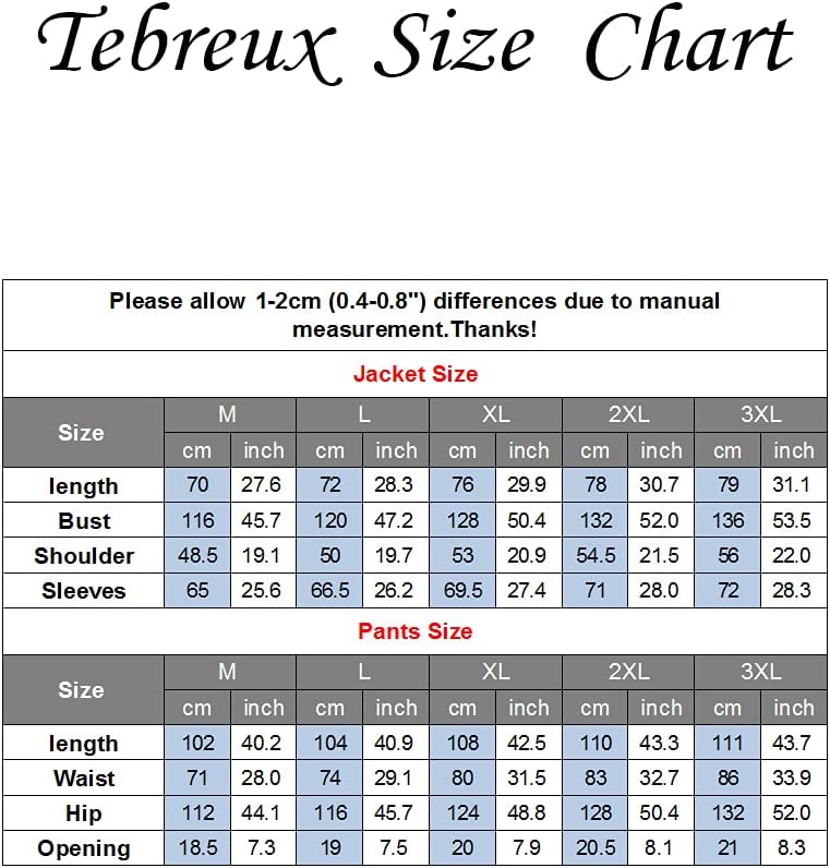 Tebreux Men’s Sports Tracksuit Sweatsuit Casual Sweatpants Full-Zip Running Jogging Set