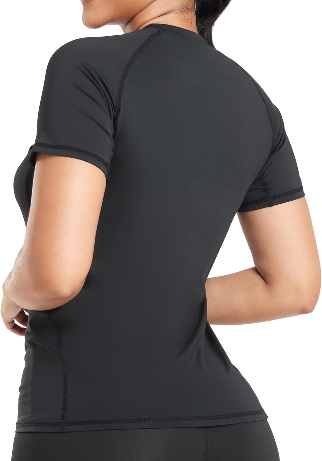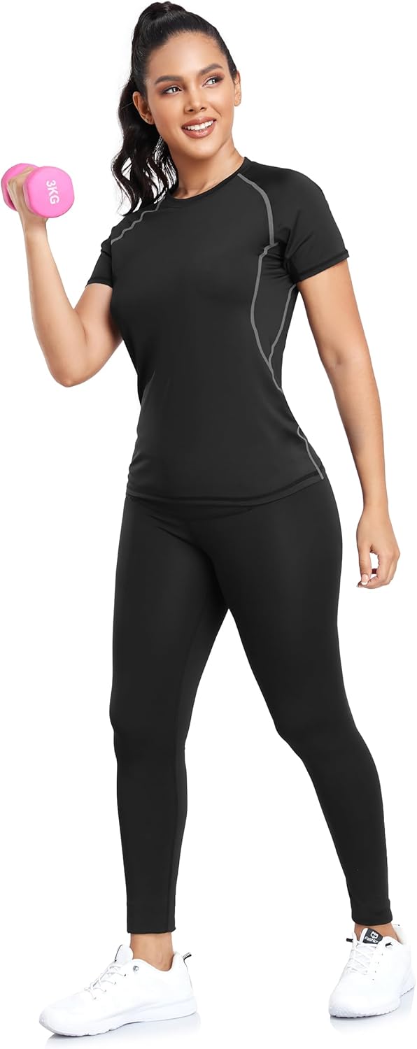 Comfort and ease in sports are essential for a breathable and cool wearing experience. These women’s compression athletic t shirts are made of breathable fabric that wicks away sweat and has excellent breathability and stretch to keep you dry and comfortable even during intense workouts.