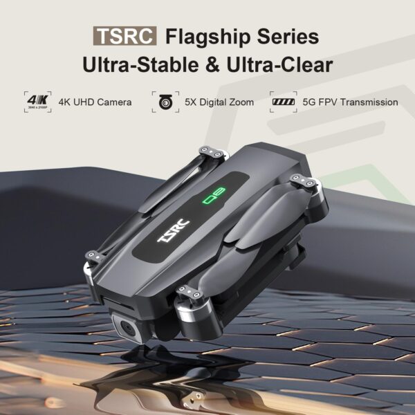 【𝐔𝐥𝐭𝐫𝐚 𝐂𝐥𝐞𝐚𝐫 𝟒𝐊 𝐀𝐧𝐭𝐢-𝐒𝐡𝐚𝐤𝐞 𝐂𝐚𝐦𝐞𝐫𝐚】: With 4K Ultra HD Camera and 𝐁𝐮𝐢𝐥𝐭-𝐢𝐧 𝐒𝐡𝐨𝐜𝐤 𝐀𝐛𝐬𝐨𝐫𝐩𝐭𝐢𝐨𝐧 𝐡𝐨𝐥𝐝𝐞𝐫, TSRC Q8 guarantees stunning and vivid footage in a bird’s-eye view without missing any details. It’s your ticket to the sky.