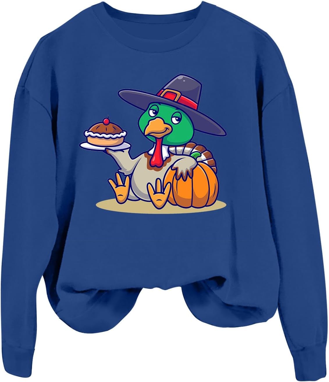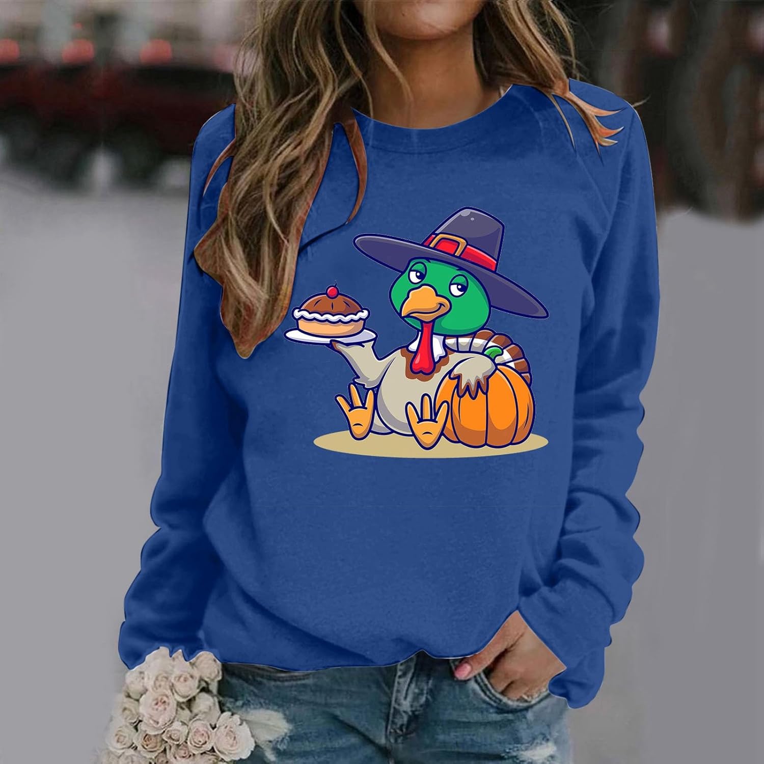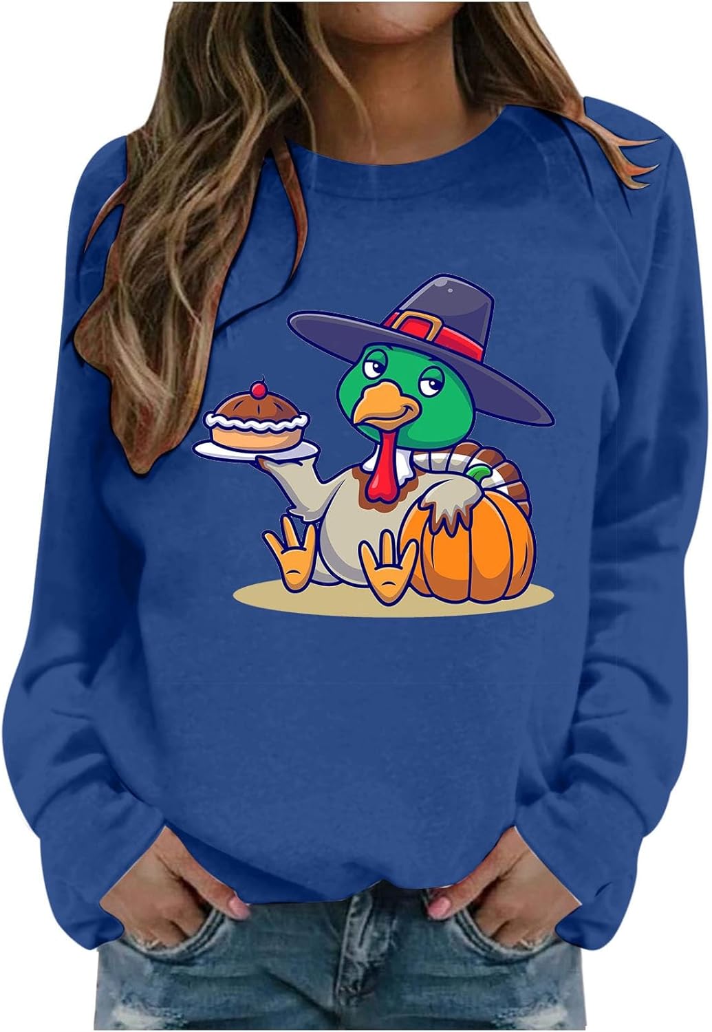 Thanksgiving Sweatshirt Women Turkey Print Graphic Sweatshirts Hoodies Oversized Fall Winter Pullover Top