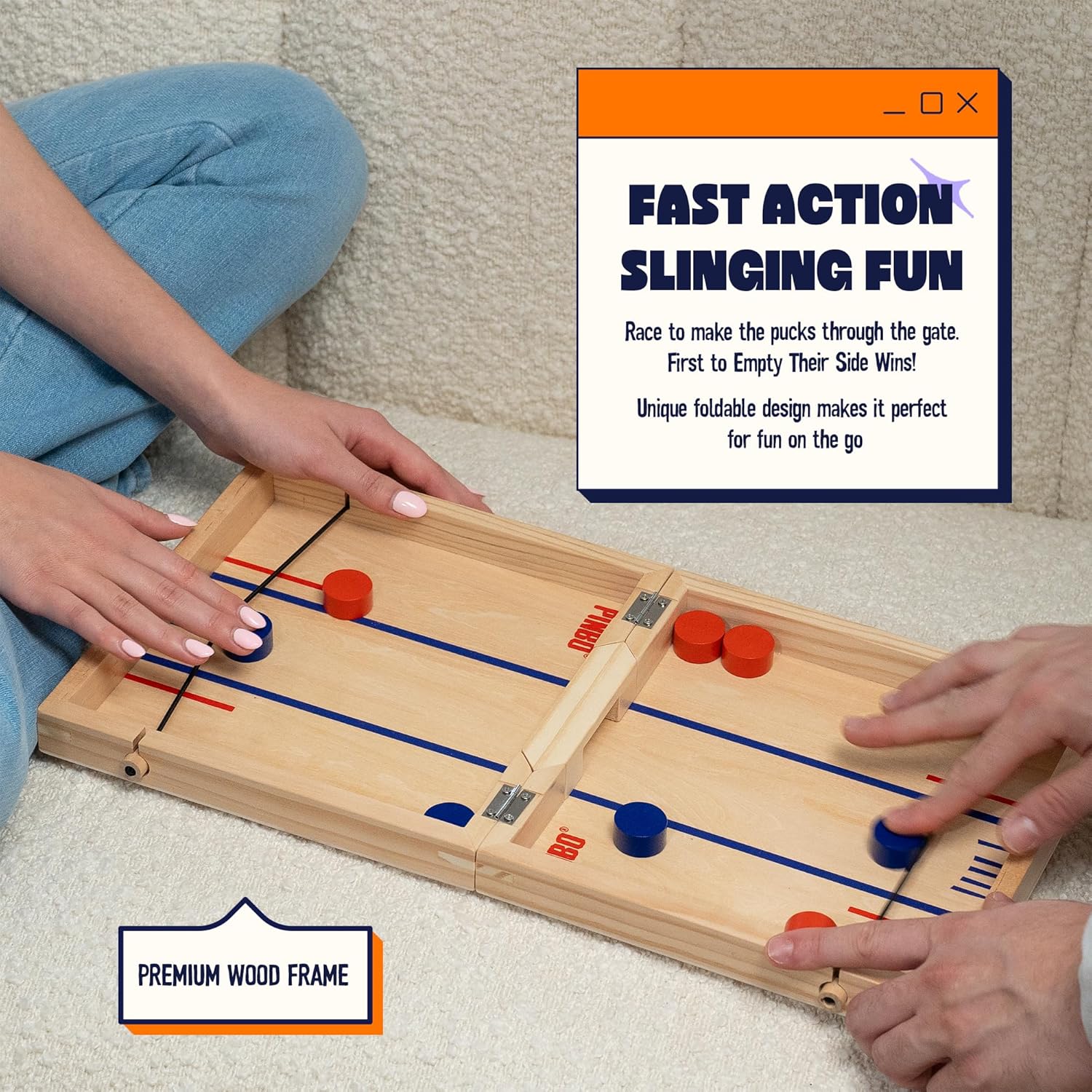 The Classic Slingshot Game – Fast Action Two Player Foldable Game for Ages 6 and Up. Spare Parts Included