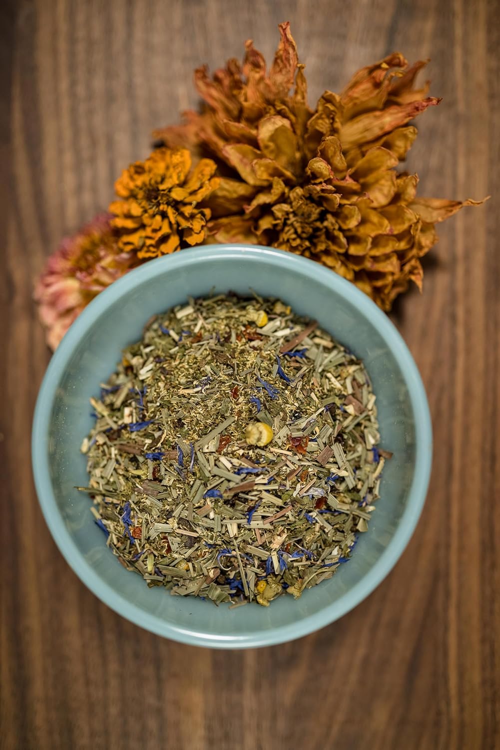 Black tea, Ginger, Cinnamon, Cardamom, Black+White pepper, Clove, Nutmeg, Calendula petals, Natural flavors (organic compliant) Lemongrass, Peppermint, Camomile, Rosehip, Spearmint, Valerian Root, Hibiscus, Cornflower petals, Natural flavors (Organic Compliant) Green Tea 1st Grade New Crop Cut Nettle Leaves 1st Grade New Crop Raspberry Leaves