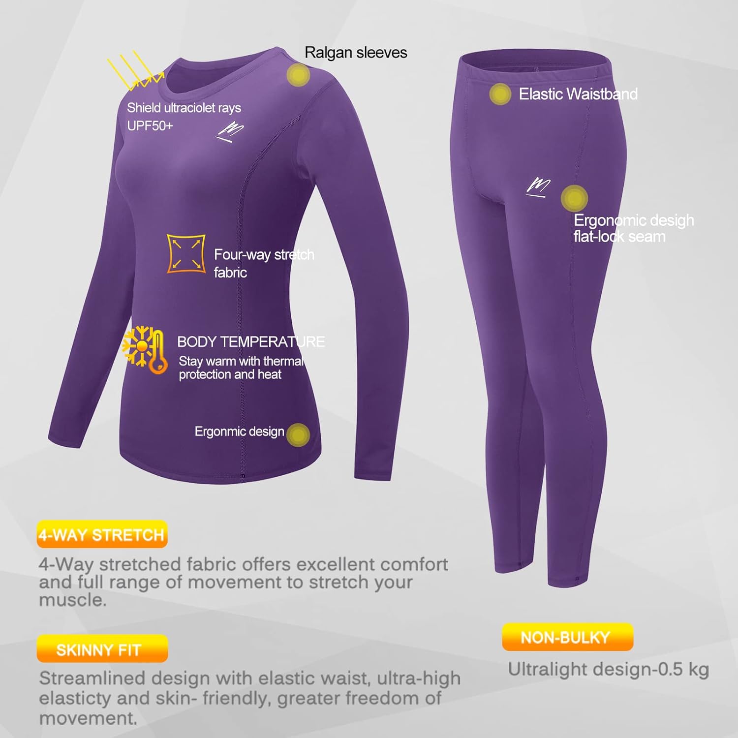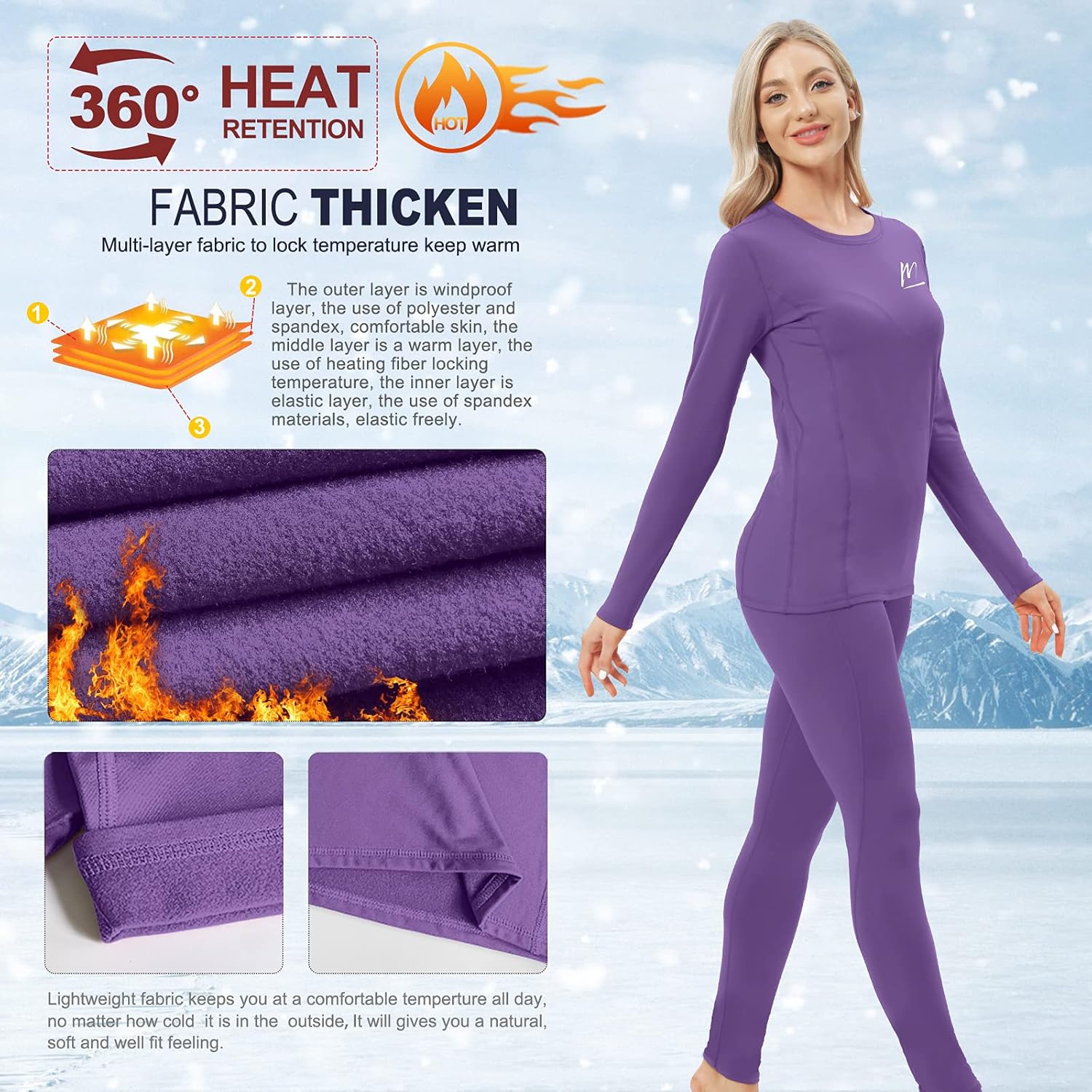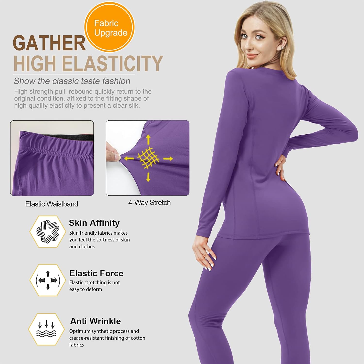 Thermal Underwear for Women, Winter Warm Base Layer Compression Set, Fleece Lined Long Johns Running Skiing