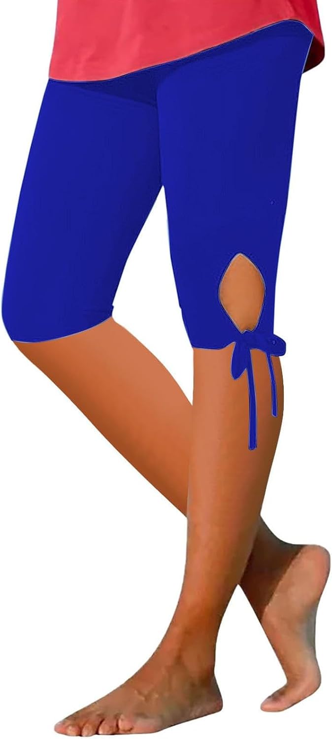 Thick High Waist Yoga Pants Length Capri Leggings 2024 Summer Cropped Pants Casual Solid Comfy Capris Hiking Pants