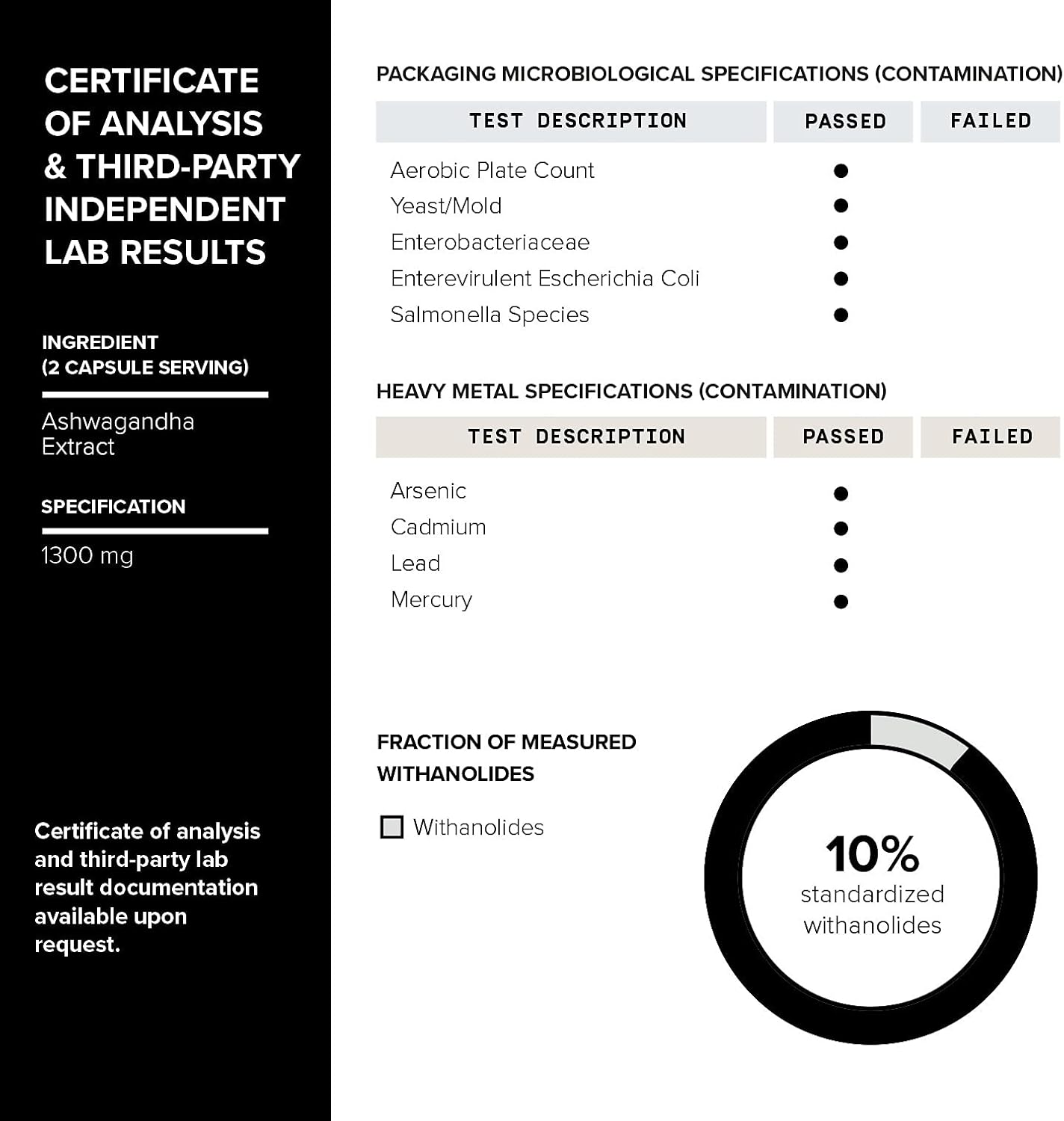 Each Batch is Individually Tested – We test each batch both ourselves and through a third-party independent laboratory to ensure our ingredients contain the correct standardized level of purity and active ingredients. We also test each batch for any possible additives, contaminants, and impurities to ensure the highest level of quality.