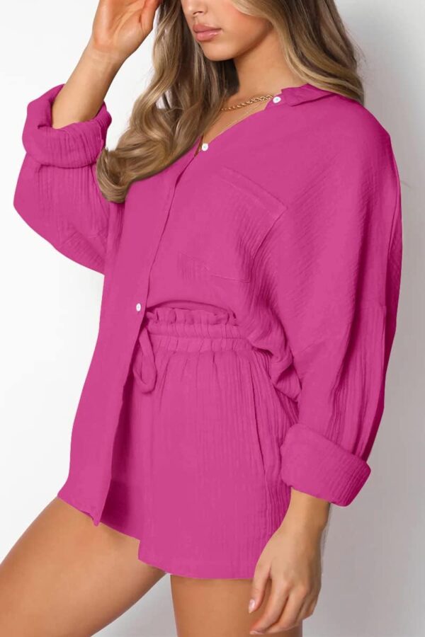 Customers like the color, comfort, and lightweight fabric of the coordinated outfit. They mention it’s very cute, flattering for their body shape, and the material is soft. However, some customers have mixed opinions on the fit and material quality.