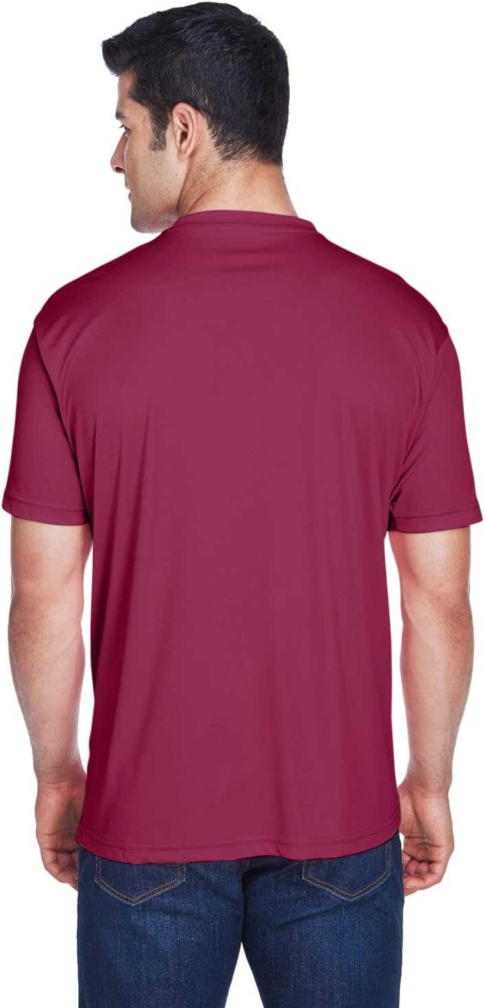 4 oz., 100% micro-polyester; Moisture-wicking; UPF 30+ protection; Athletic fit; Neck tape; 1/4inch topstitching
