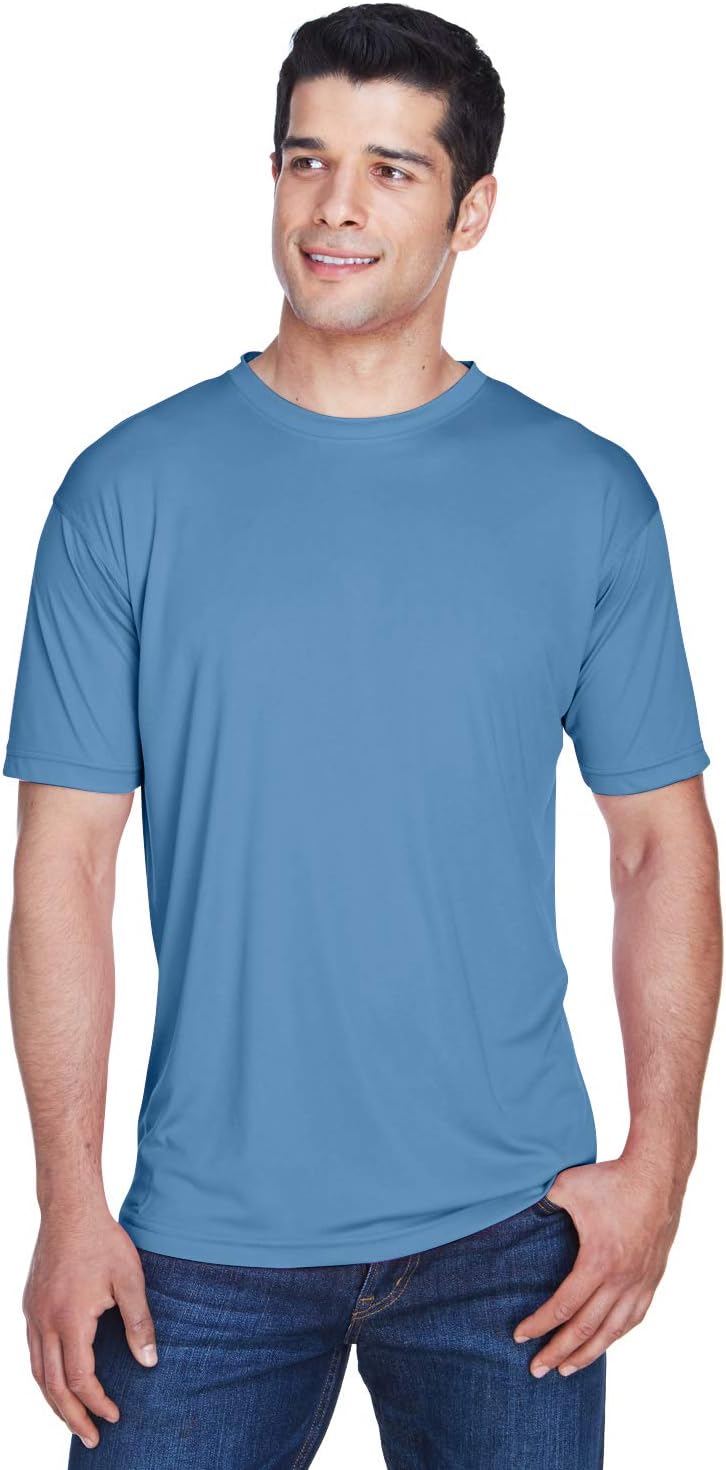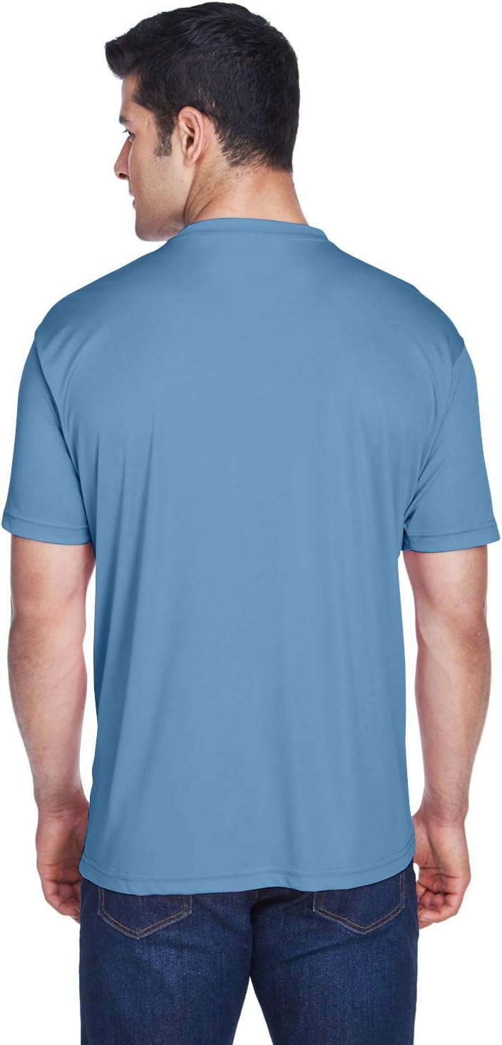 4 oz., 100% micro-polyester; Moisture-wicking; UPF 30+ protection; Athletic fit; Neck tape; 1/4inch topstitching