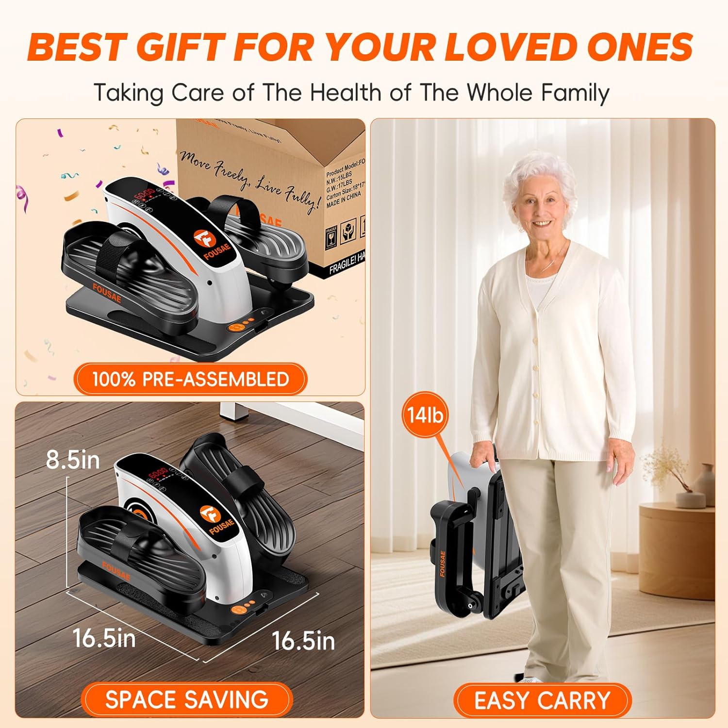 ELDERLY FRIENDLY & PORTABLE: FOUSAE ellipse leg exerciser as seen on tv, no assembly required! Our lightweight and compact design makes it easy to store and move around the house; Making it a thoughtful gift for parents and your loved one