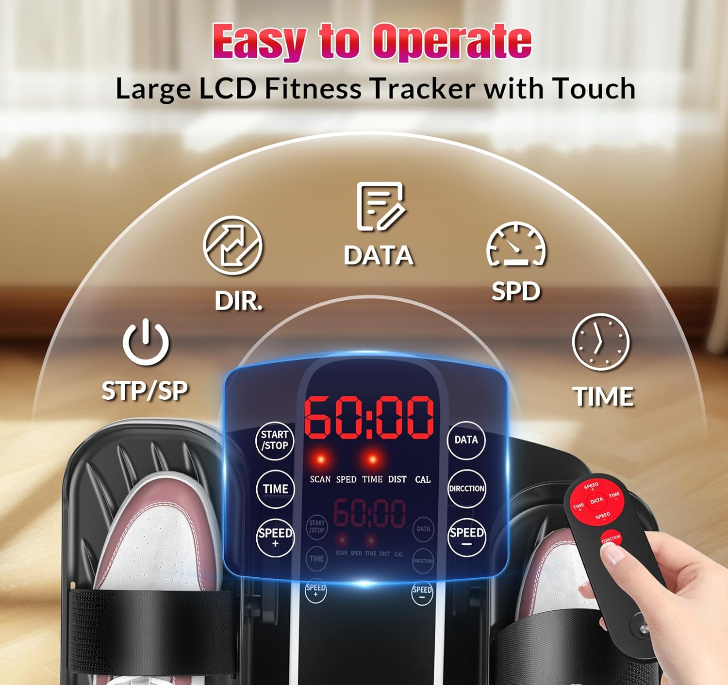 CONVENIENT REMOTE CONTROL: Say goodbye to complicated programs! With the simple remote control, you can easily start your pedal exercise, adjust speeds up to 15 levels, time up to 60 minutes, and switch between forward or backward pedaling