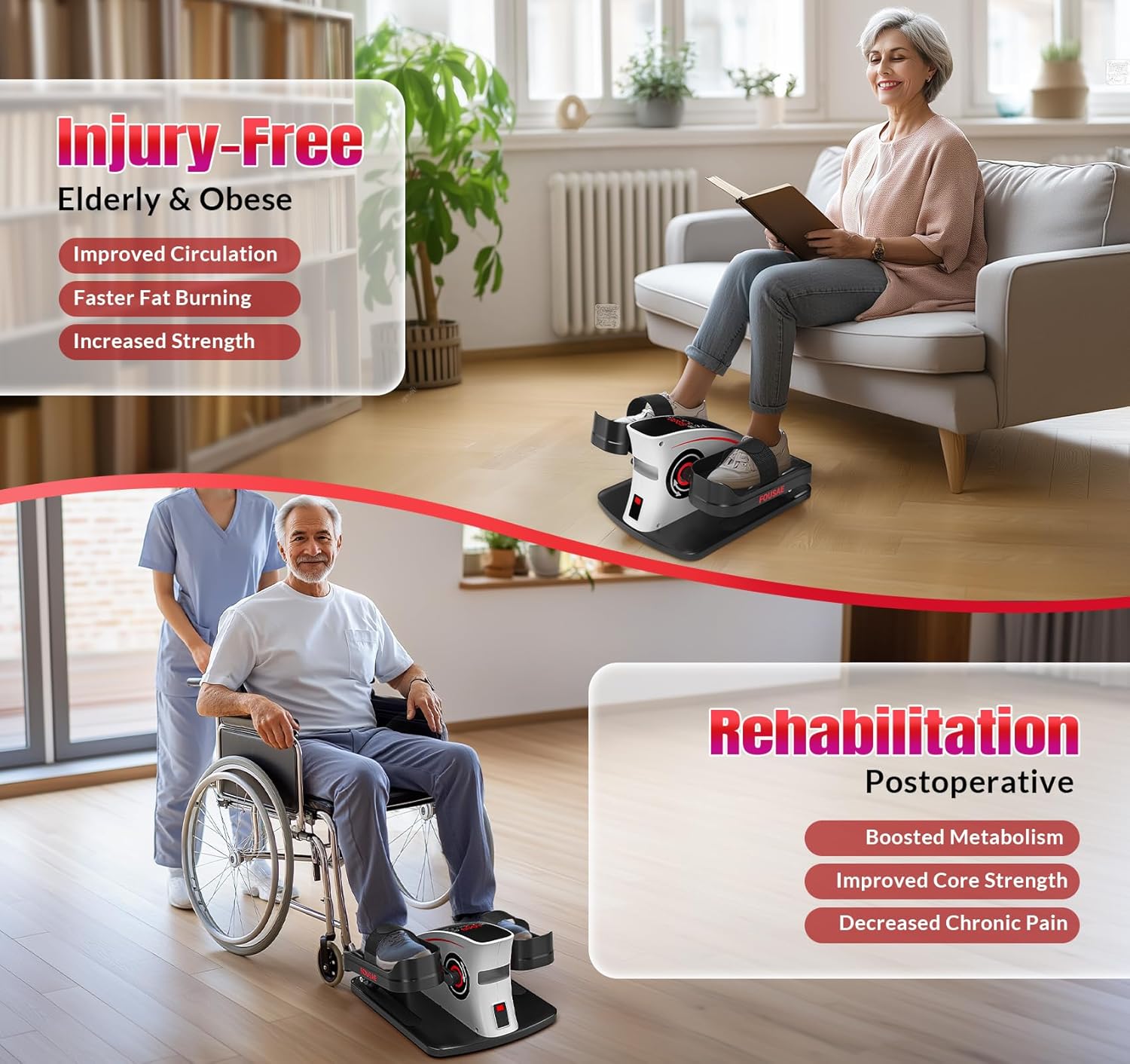 LOW-IMPACT & 0 PRESSURE: Transform your sedentary lifestyle with the FOUSAE under desk elliptical! Low-intensity leg exercise can burn calories, improve cardiovascular health. Ideal for health seekers, especially sedentary office workers and seniors
