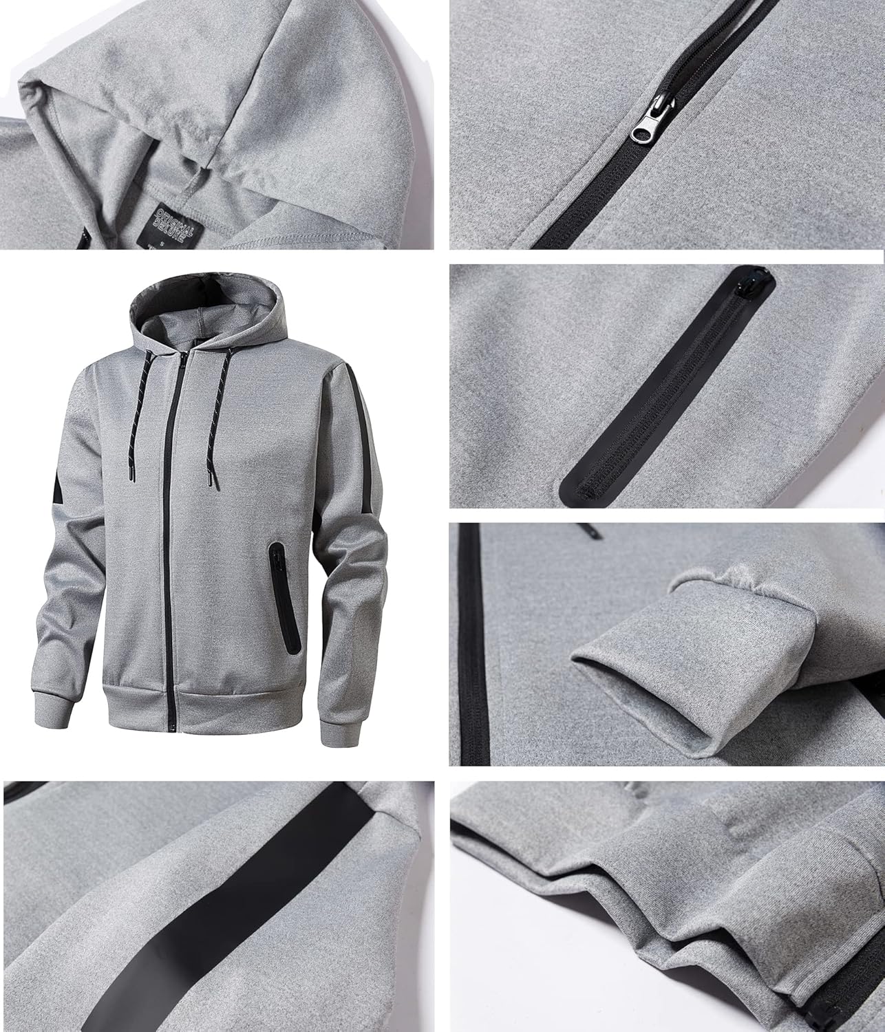 Fabric:100% PolyesterStyle:HoodedFeature:Elastic Waistband, Drawstring, Zipper Pockets, Adhesive StripPerfect for home and casual styles, ideal for everyday wear, walking, home office, gym, basketball, hiking, running, jogging, sports, exercise, fitness, outdoor activities, and daily casual wear.