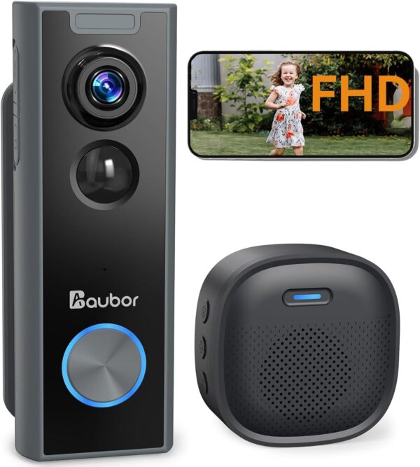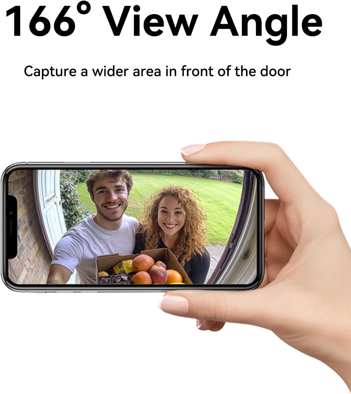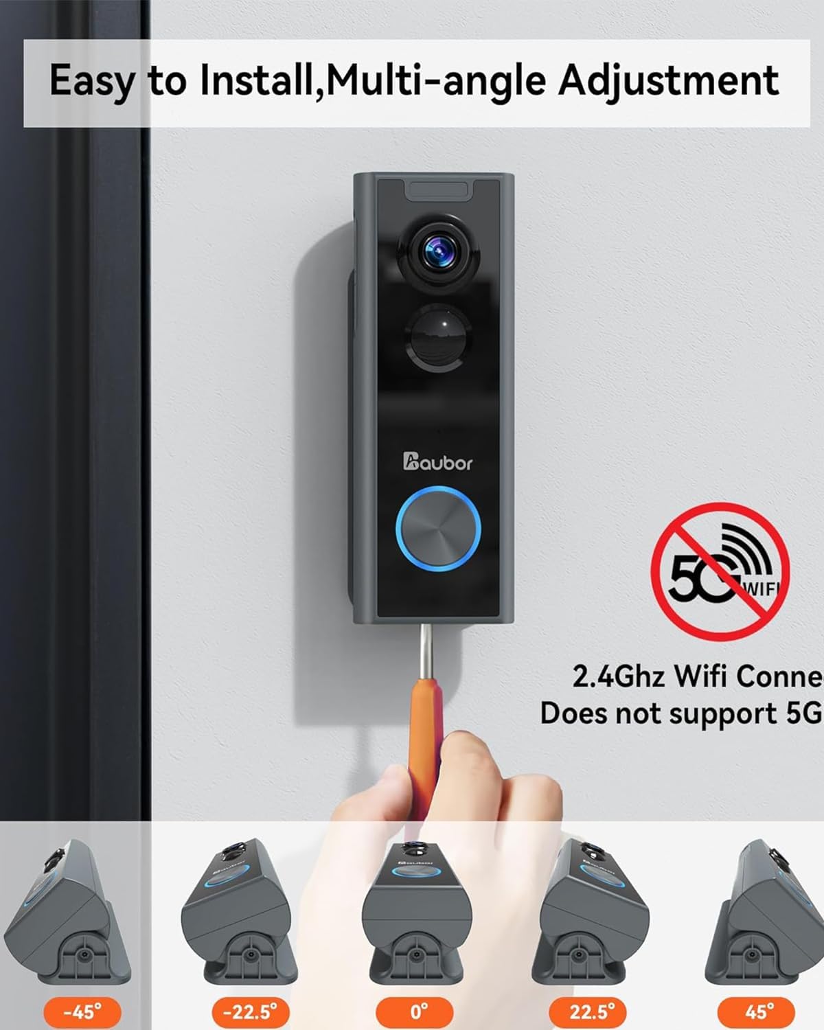 2K QHD & Night Vision — Aubor video doorbell camera now boasts a 2K QHD resolution, delivering sharper real-time images and video. It also features a wide 166° viewing angle, ensuring you capture everything in crystal-clear detail. When it gets dark, the built-in IR lights automatically switch on night vision mode, so you can see clearly even in pitch-black darkness.