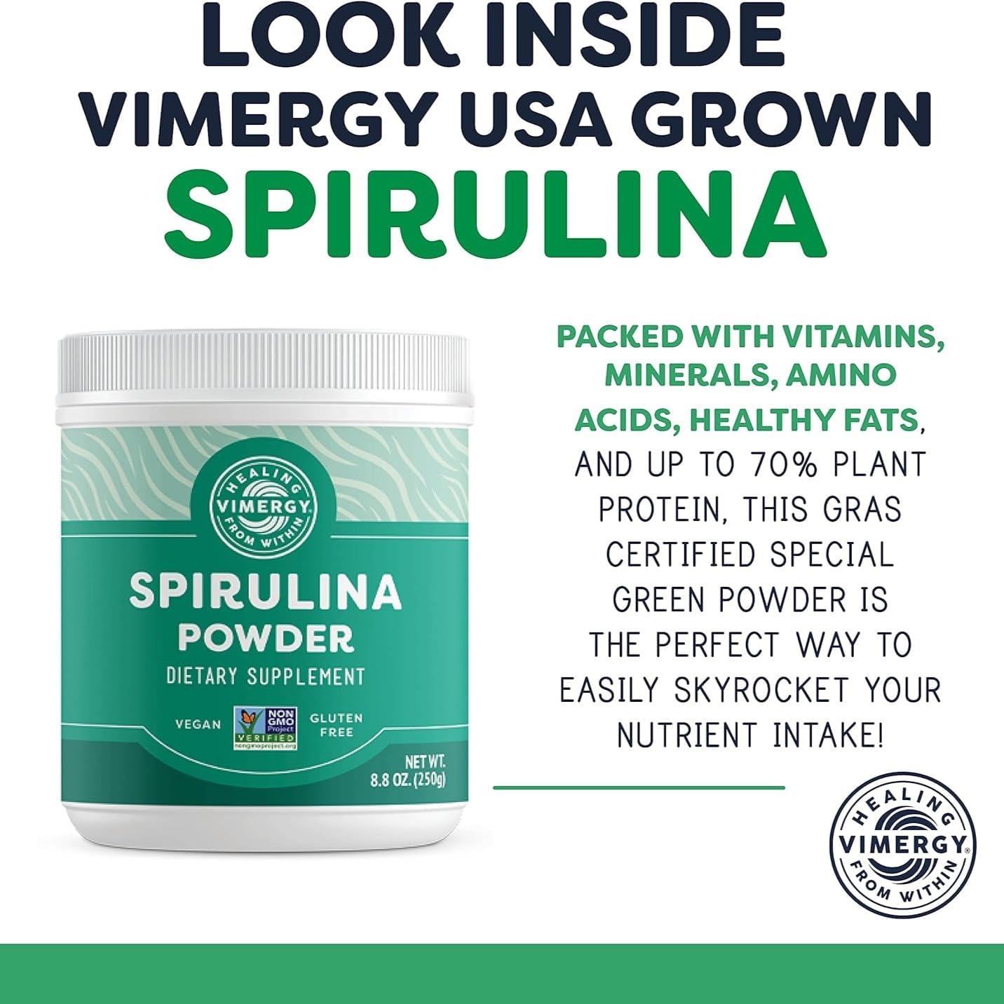 PEACE OF MIND CLEAN Vimergy spirulina super greens powder is formulated without anti-caking agents, fillers, binders, sugar, colors, or flavors. Vimergy Spirulina Powder is non-GMO, vegan, kosher and paleo friendly. For a daily health boost, just add a scoop of our natural green powder to a glass of water or juice, or a smoothie.