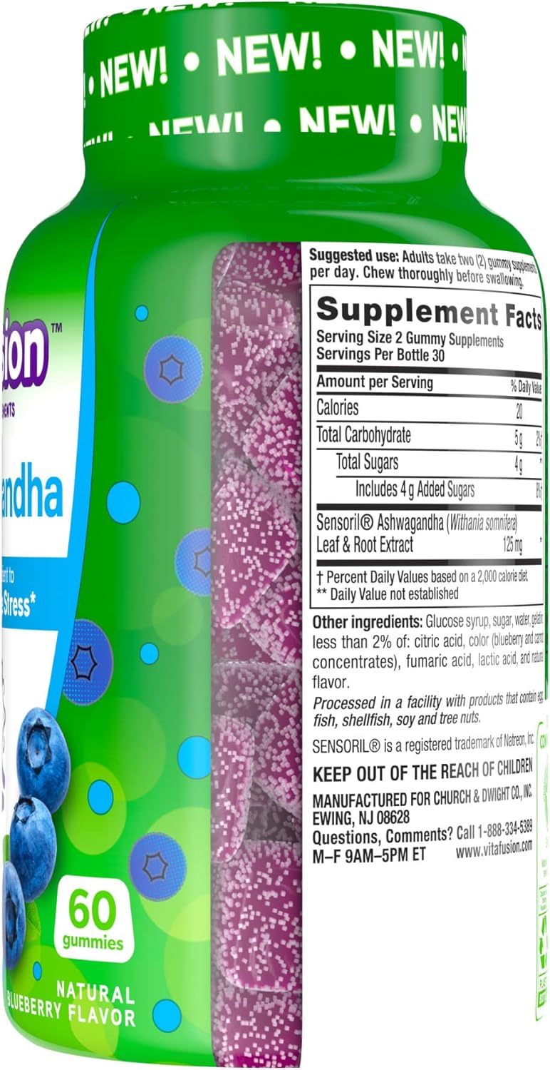 CLINICALLY SHOWN ASHWAGANDHA: With 125mg of Sensoril ashwagandha per serving, Vitafusion ashwagandha gummies are a delicious & nutritious alternative to liquid, capsules, drops, and powder versions of ashwa.