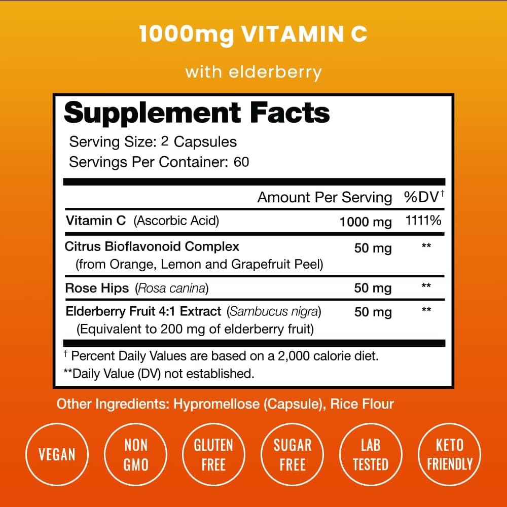 Powerful Antioxidant – Protect your body with an antioxidant boost from NutraChamps Vitamin C. Not only is Vitamin C an important antioxidant by itself, but it has also been shown to regenerate other antioxidants within the body. Add Elderberry, Citrus Bioflavonoids and Rose Hips to the picture and you’ve got an immune support boosting, antioxidant powerhouse!