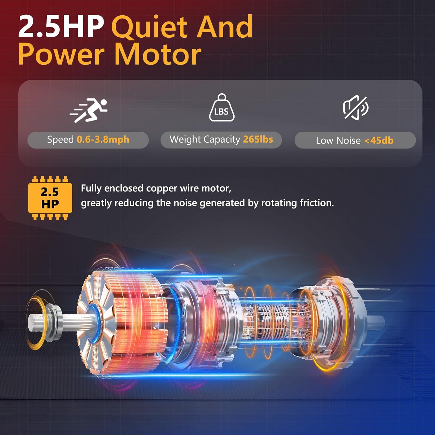 【Powerful & Silent】AIRHOT Treadmill is equipped with a high-powered 2.5HP motor that provides a strong and reliable performance. With a maximum weight capacity of 265 pounds, it can easily accommodate users of different sizes. What sets it apart is its whisper-quiet operation, producing less than 45 decibels of noise. Say goodbye to noisy workouts and enjoy a peaceful exercise experience in the comfort of your own home