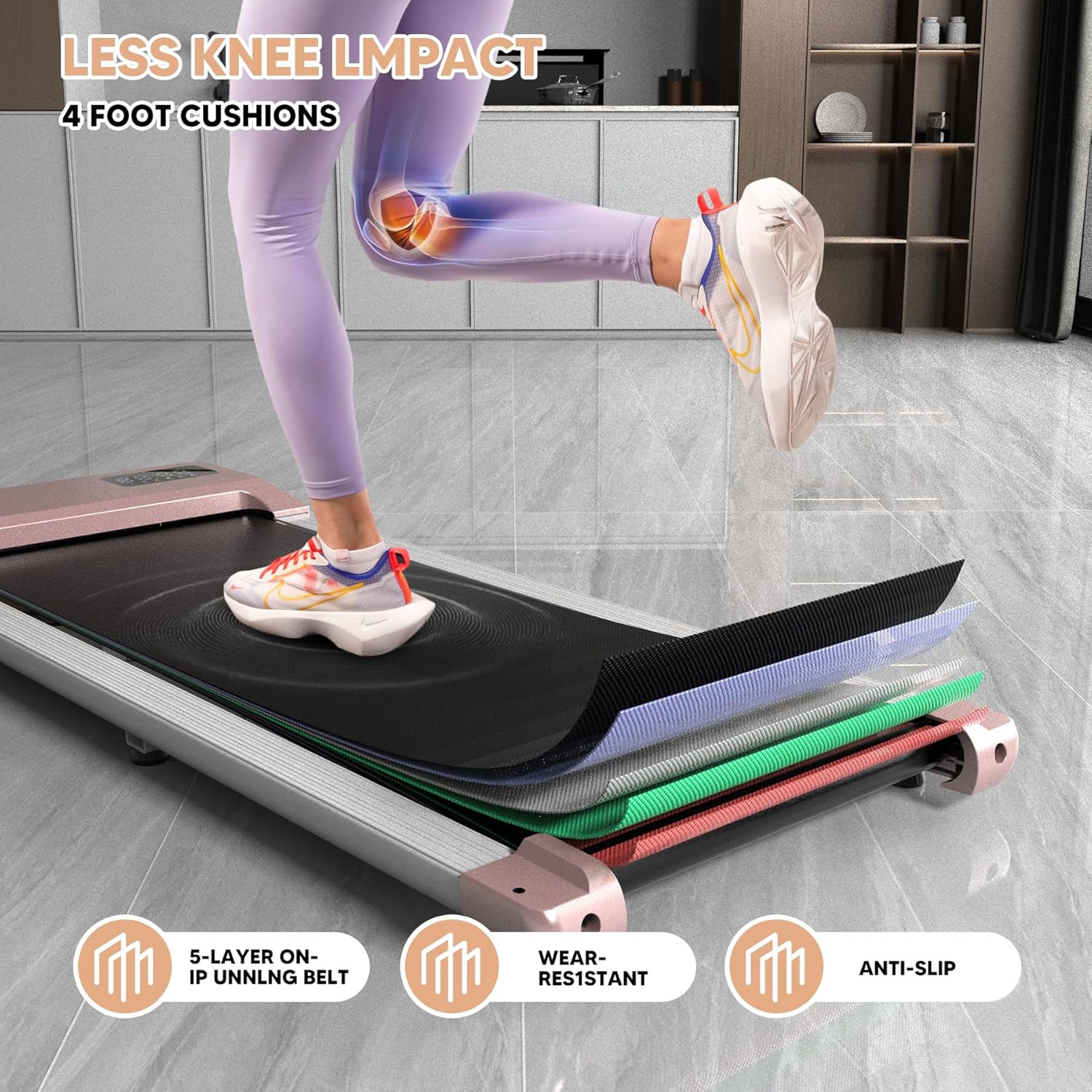 【5-LAYER ANTI-SLIP & SHOCK-ABSORBING】The walking treadmill is made of 5-layer wear-resistant non-slip shock-absorbing running mats, which greatly reduces the impact during exercise and provides protection for the joints of the knees, muscles and ankles. It is the best holiday gift for your family and friends!