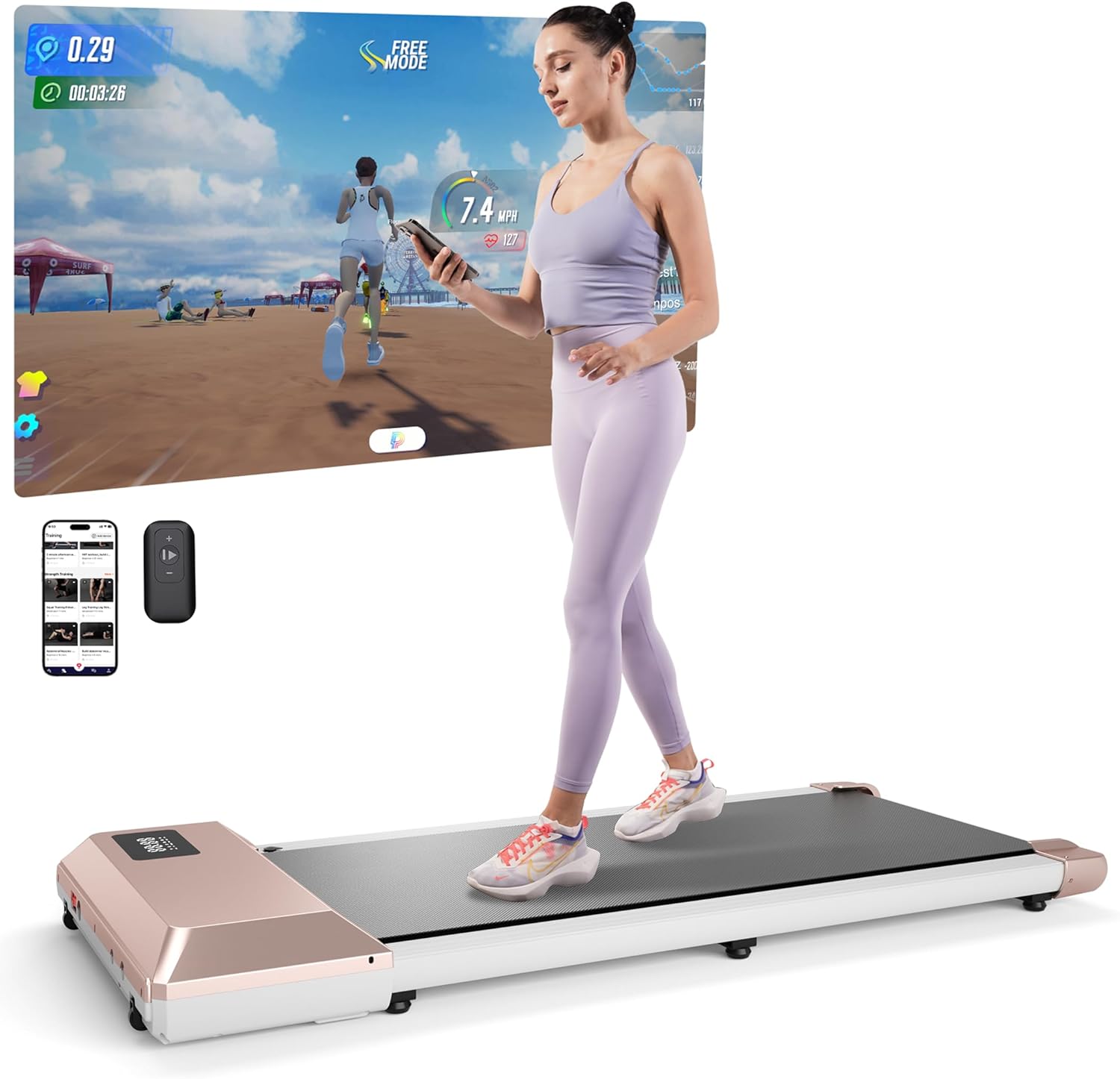 【ONLINE SPORT APP】This walking pad treadmill has a global sports community platform, PitPat APP, which provides you with different outdoor AI scenarios so that you can enjoy outdoor sports while running at home! Meanwhile you can have exercise competitions with your friends on the platform and share your fitness results, making exercise more fun. We also regularly organize large-scale exercise competitions with grand prizes for the winners!