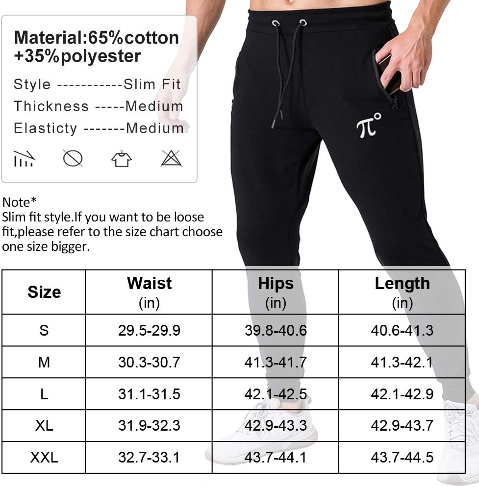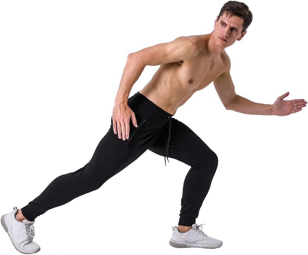 Wangdo Men’s Zipper Pockets Joggers Pants – Casual Gym Workout Track Pants Comfortable Slim Fit Tapered Sweatpants