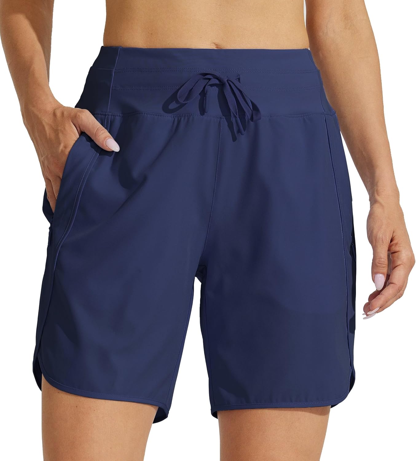 Customers like the fit, comfort, and pockets of the shorts. They mention the length is perfect for long leg women, the material is breathable, and the pockets are deep enough. Some appreciate the lightweight material and nice looking style.