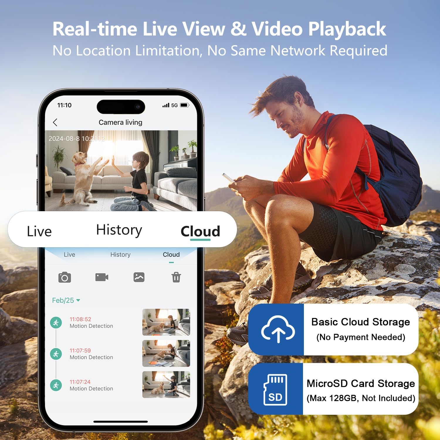 【Lifetime Free 7-day Rolling Cloud Storage and Free SD Card Storage】This home security camera comes with lifetime free 7-day rolling cloud storage. All recordings could be stored automatically in the cloud and remain for 7 days. It also supports up to 128GB Micro-SD card local storage to back up and store videos in the SD card once the network is disconnected. Data transmission between the camera and the cloud is encrypted from end to end. Nobody except you can access it. (SD card not included)