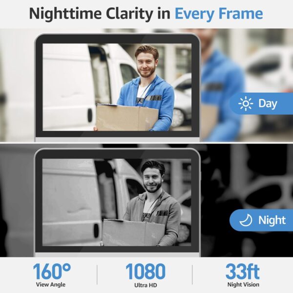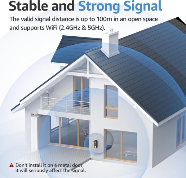 【100% WIRELESS, Easy Installation】Easy installation without plugging in, no need to connect the network cable, no need to punch holes in the door panel, DIY quick installation. Has its own wireless signal, strong penetration ability, effective signal distance up to 150 meters, no need to worry about signal delay.