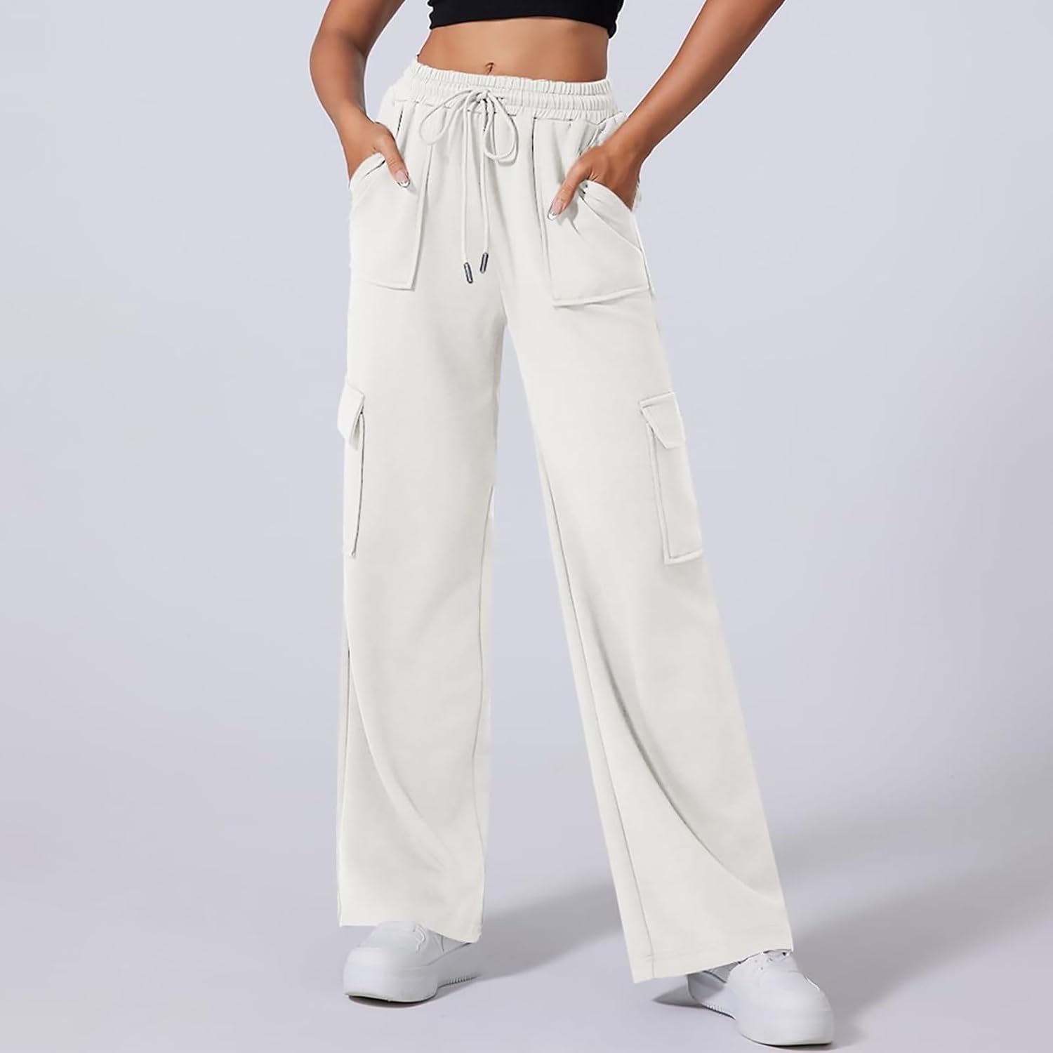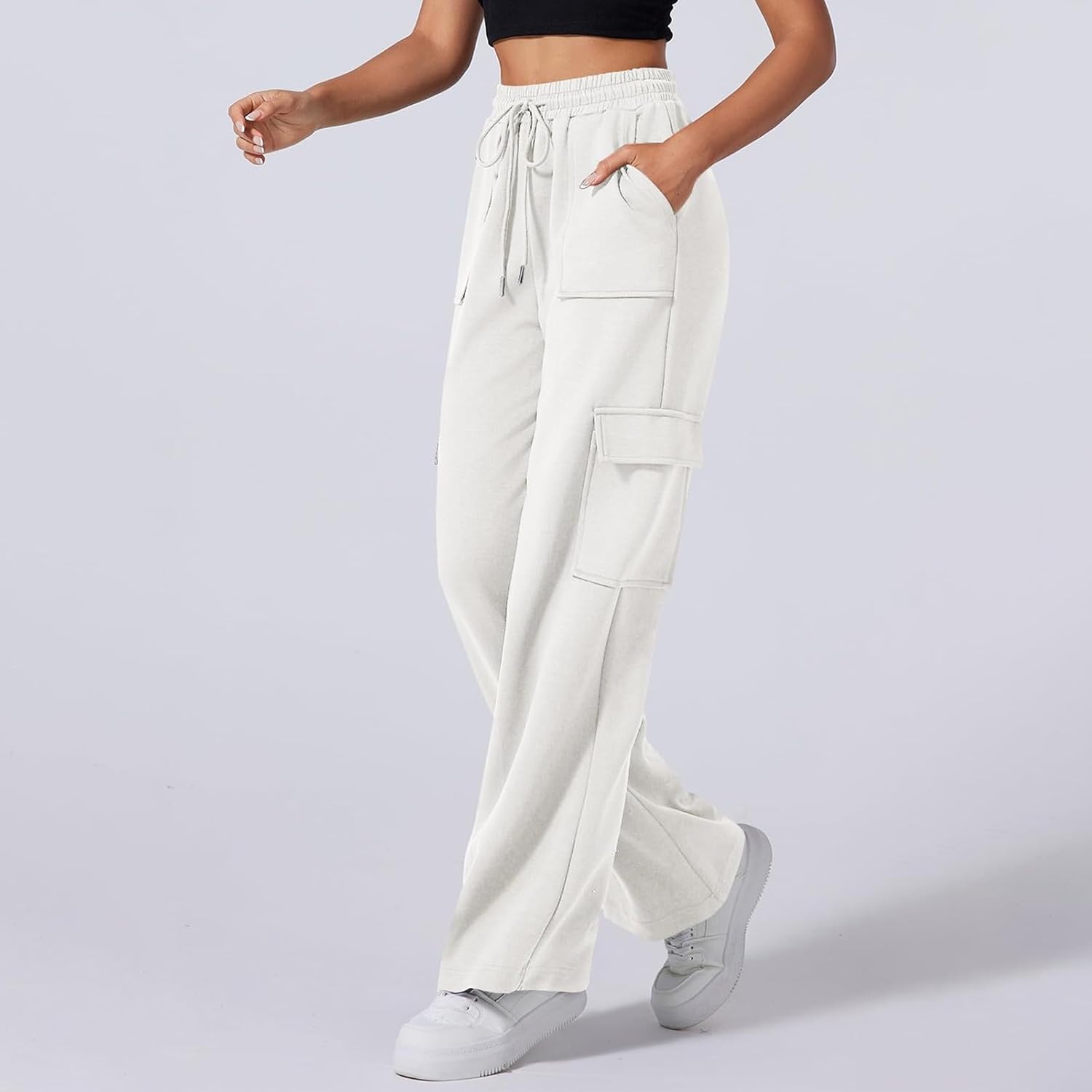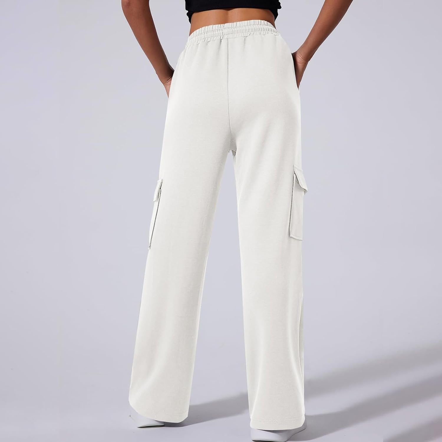 Women Cargo Sweatpants Casual Baggy Fleece Straight Trouser High Waisted Jogger Sweatpants Fall Outfits with Pocket