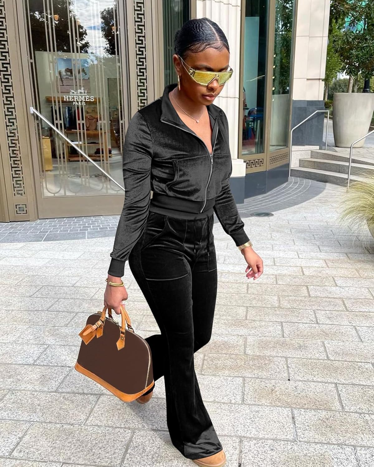 Velour track suit looks like an iconic style of relaxation and comfort. This trend of the early 2000’s has been coming back in a major way!
