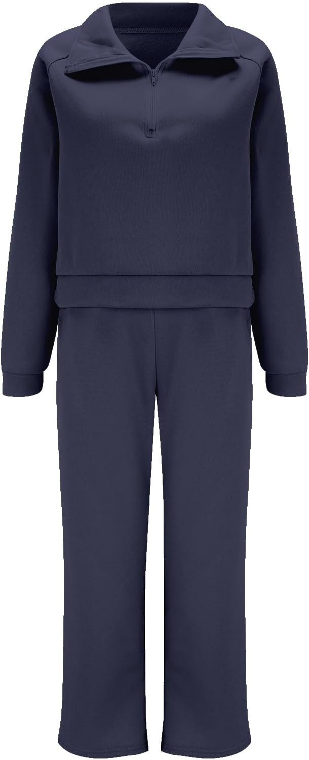 Womens 2 Piece Lounge Outfits Quarter Zip Pullover Sweatsuit Sets Oversized Sweatshirt Baggy Fall Fashion Sweatpants