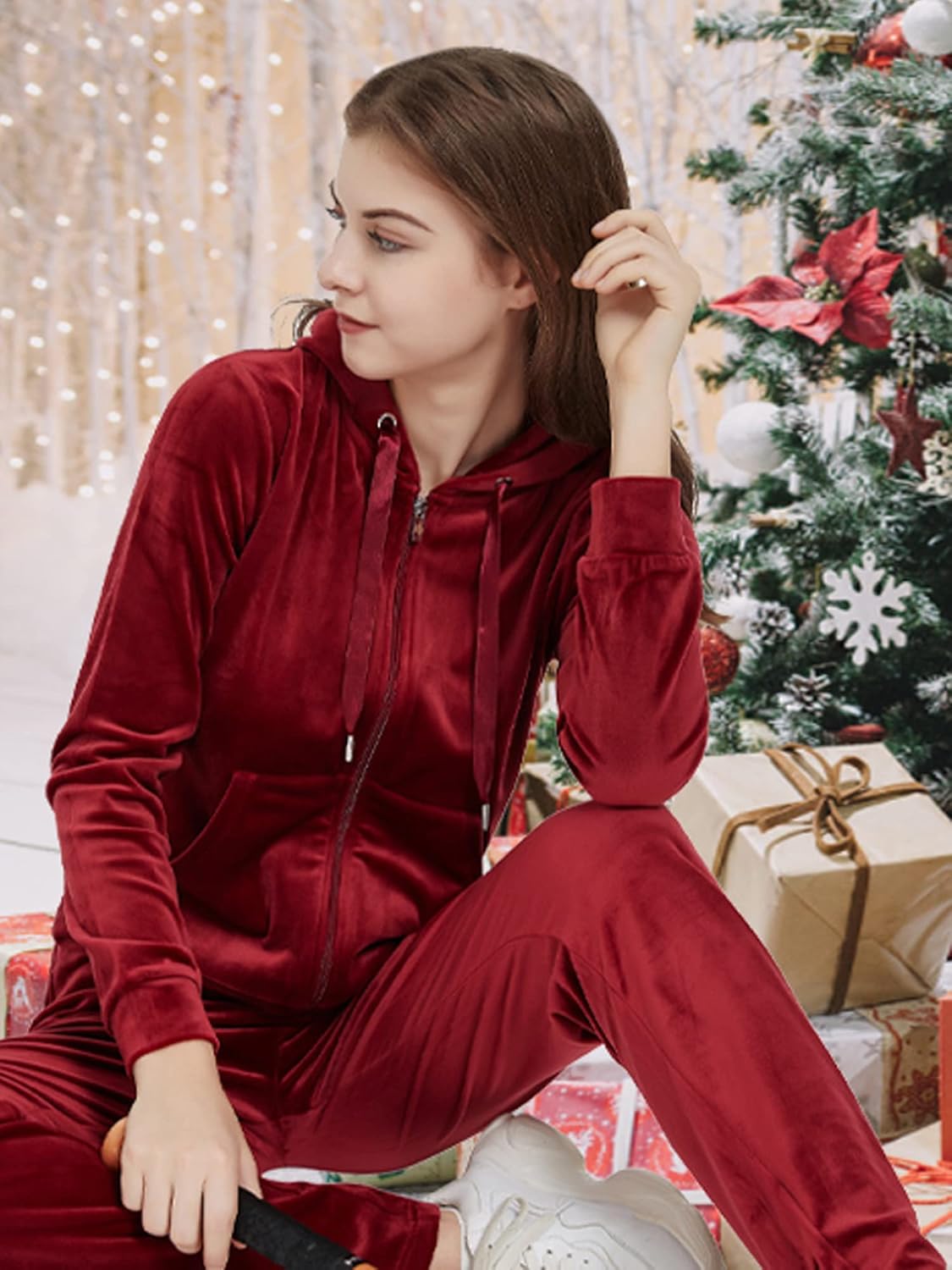 Woolicity Tracksuit for Women Set Velour Jogging Sweat Outfits Zip Hoodie and Sweatpants Set Loungewear