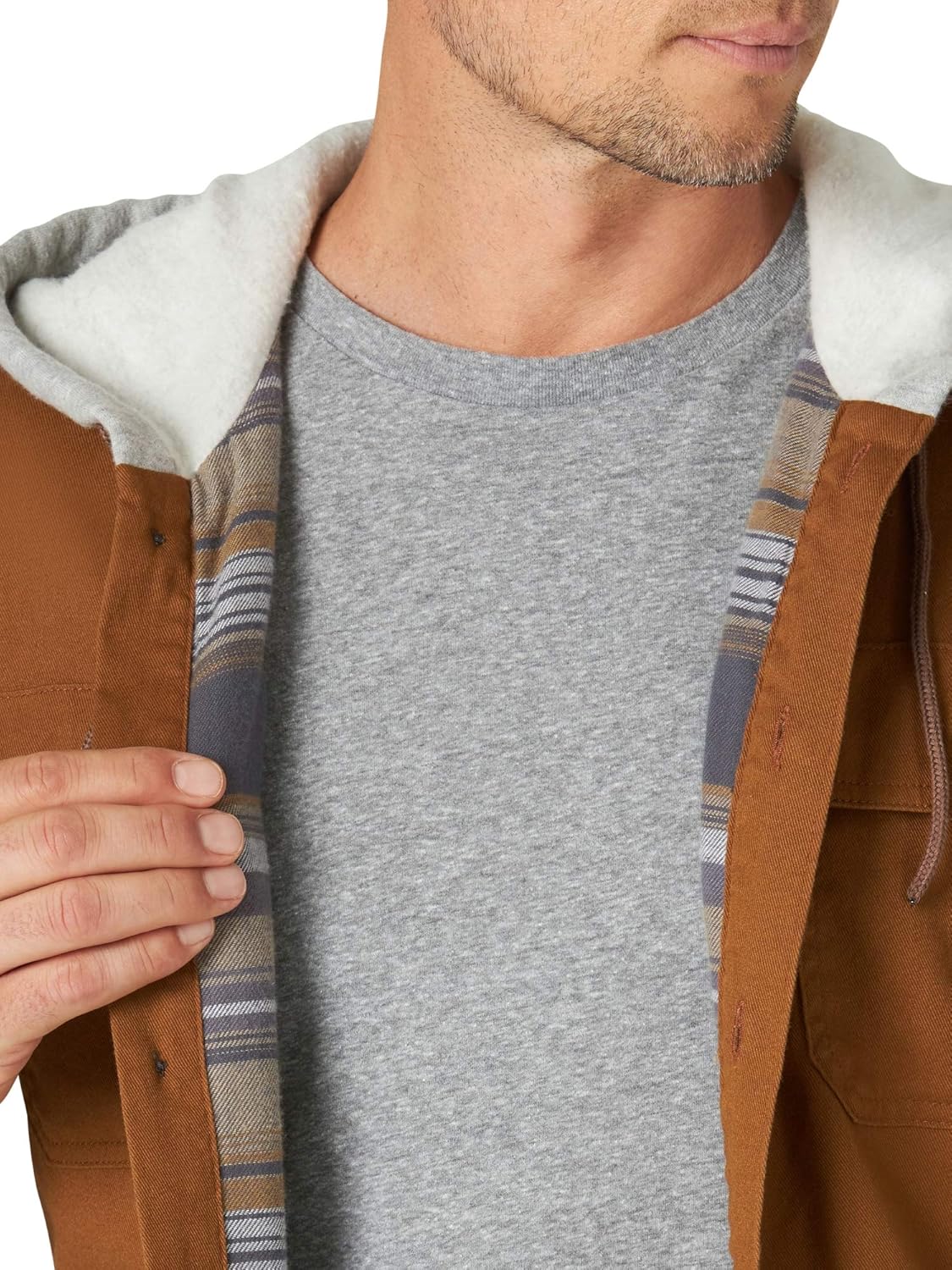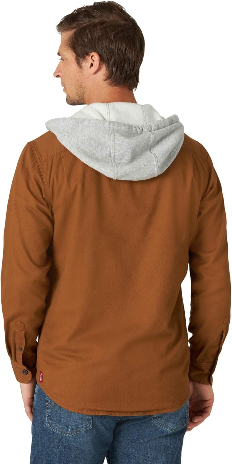 Wrangler Authentics Men’s Hooded Blanket-Lined Twill Shirt. The Wrangler Authentics Men’s Hooded Fleece-Lined Flannel Shirt combines comfort and style. Crafted with midweight twill and lined with brushed flannel, this hooded shirt jacket is built with a relaxed fit in order to provide comfort and warmth for any outdoor occasion. Great to wear buttoned up as a shirt or buttoned down as a lightweight jacket. Two (2) pockets are provided to accessible storage.