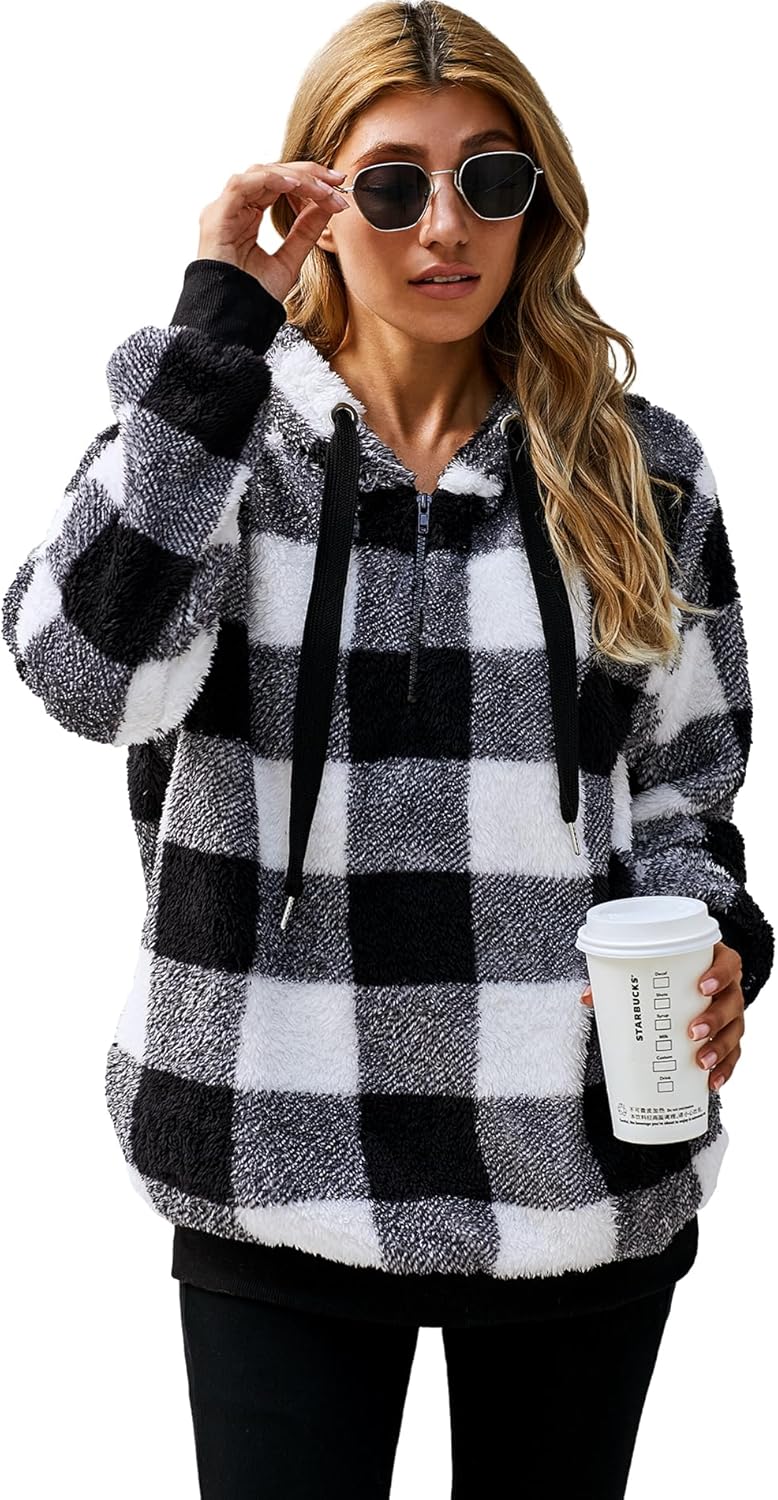 Yanekop Womens Oversized Hoodies Sherpa Sweatshirts Fuzzy Fleece Pullover Fluffy Outerwear With Pockets