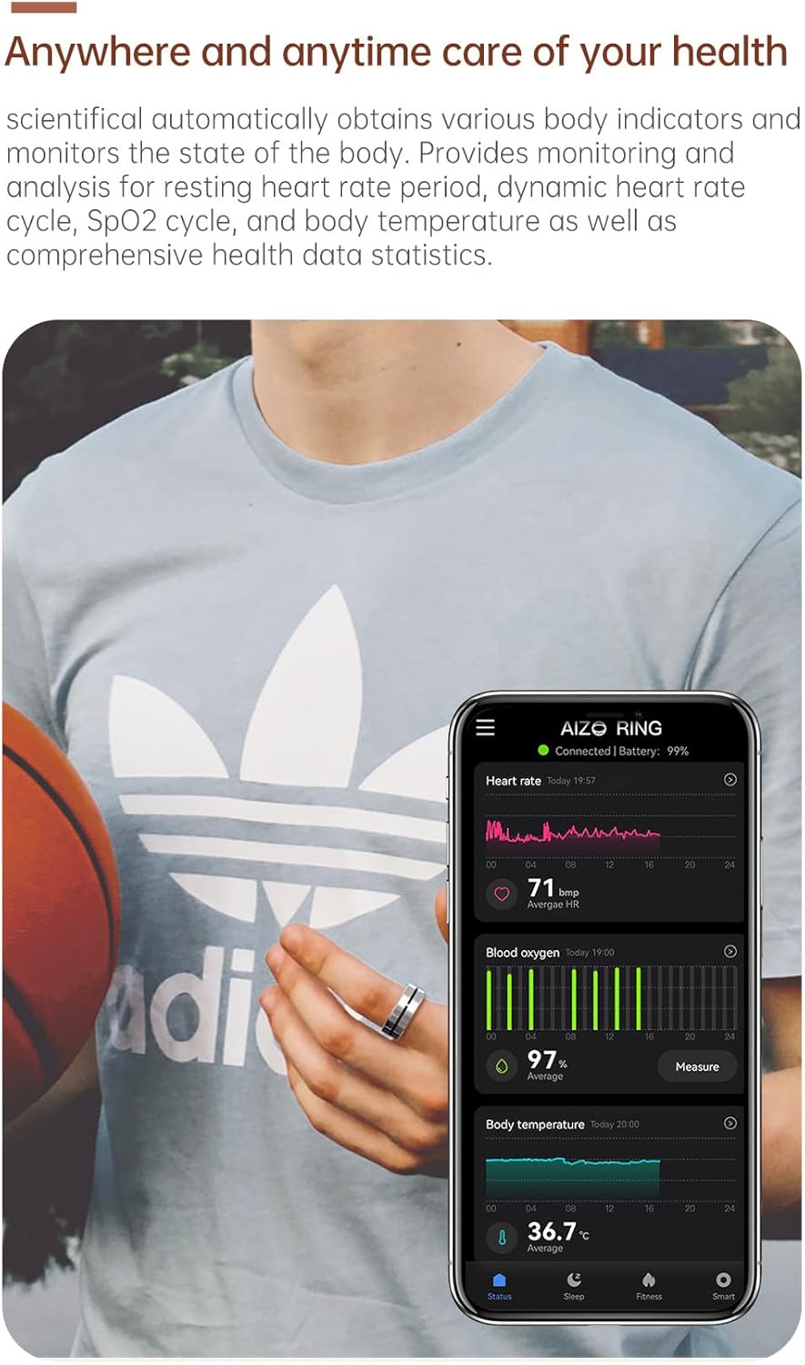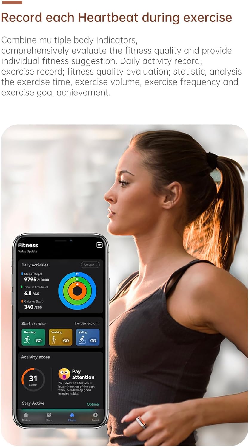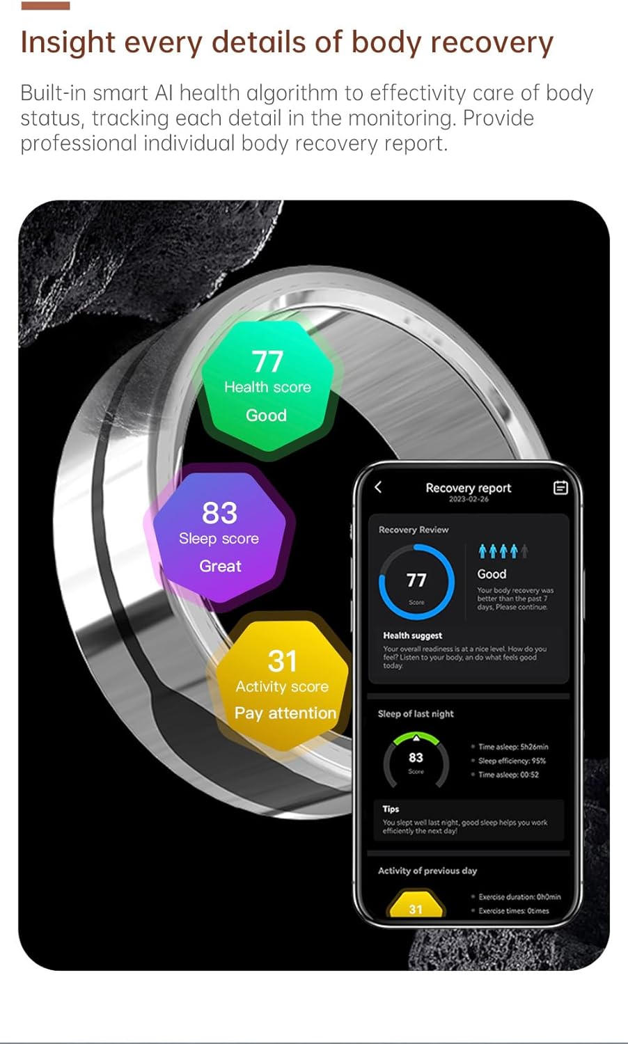 Multifunctional Health : This Smart Ring Fitness offers an array of health tracking features, it can record your sleep patterns, body temperature, and step count, providing useful data to improve your overall health.