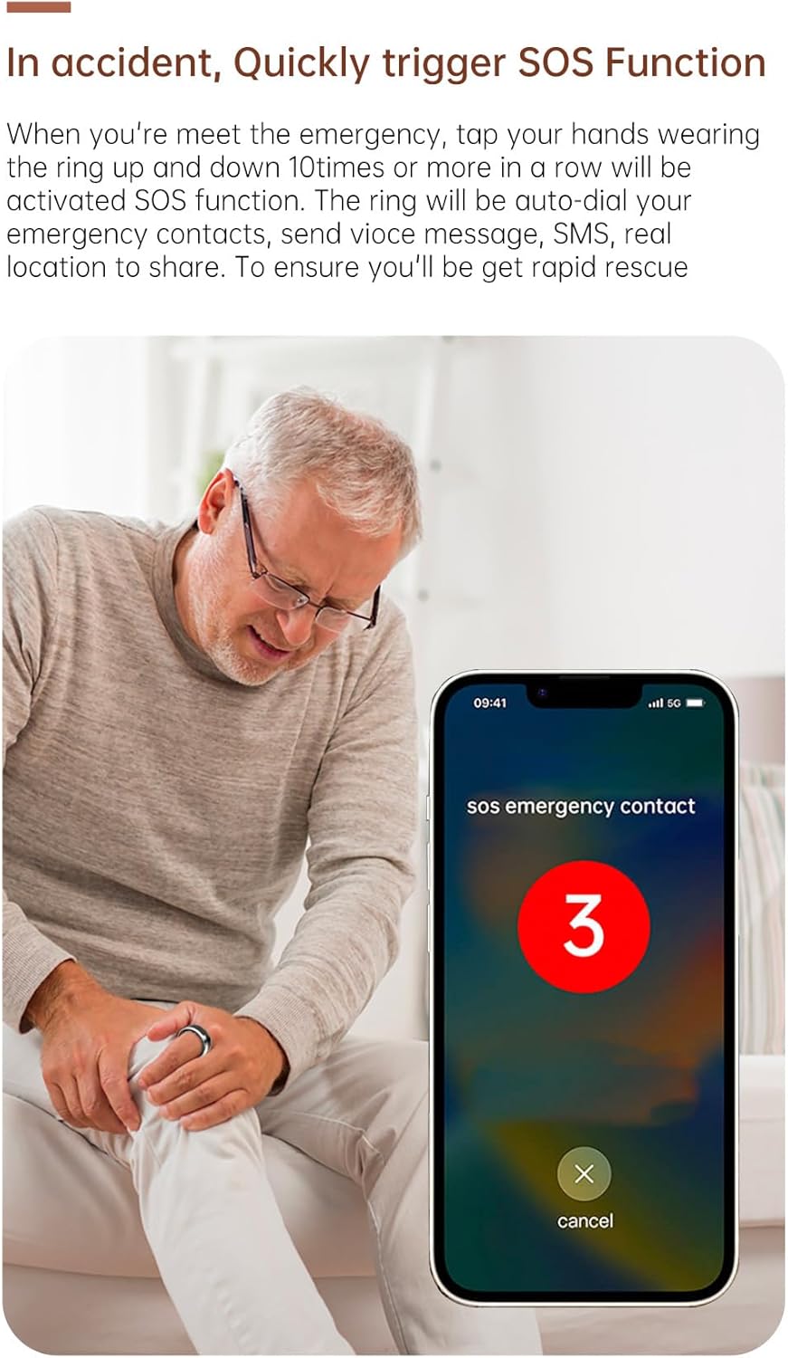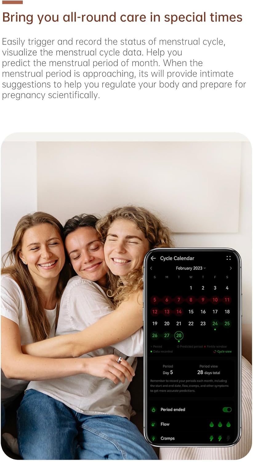 Advanced Features: Apart from the basic health tracking features, this smart ring also offers additional advanced features, such as body statistics recovery data analysis, monitoring of physiological cycles, SOS notifications.