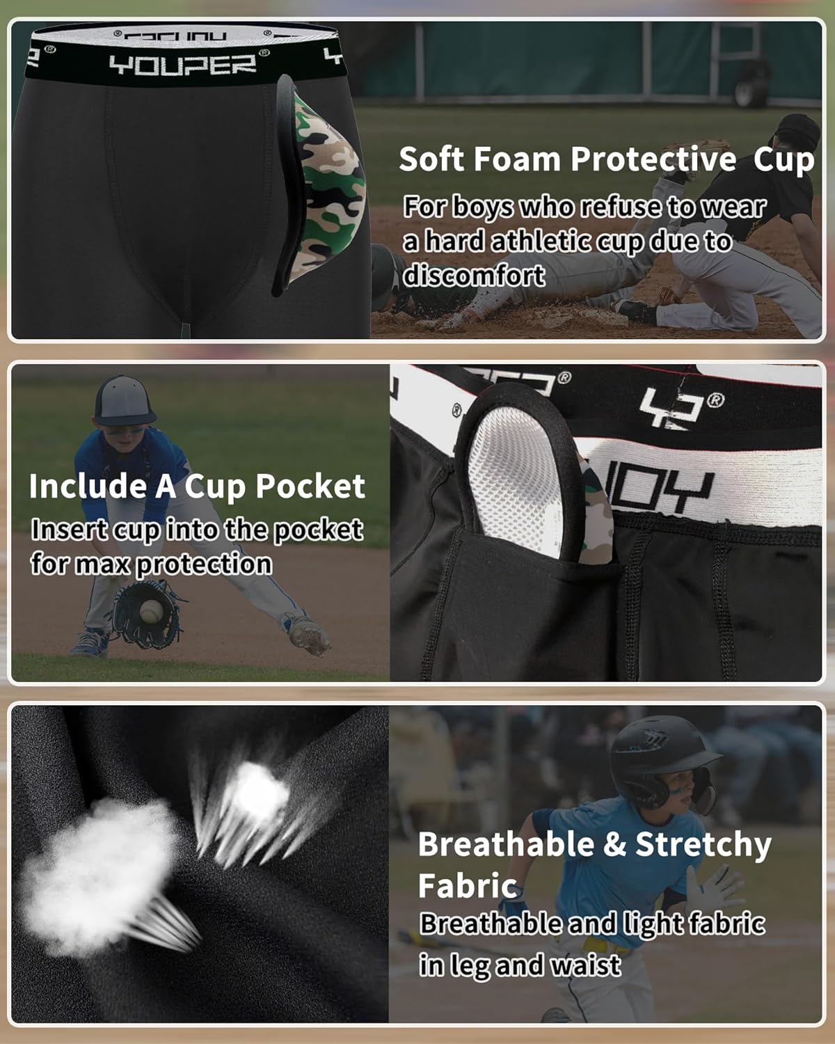 This Compression Brief with Soft Foam Protective Athletic Cup System provides great comfortable fit and protection while skating, running and crouching. This is a perfect system for boys who want to join in some contact play such as baseball, football, field hockey, lacrosse, MMA, boxing, Martial Arts and so on. Moisture Management technology makes perspiration away from the body. This Compression Brief with Soft Foam Protective Athletic Cup System provides great comfortable fit and protection while skating, running and crouching. This is a perfect system for boys who want to join in some contact play such as baseball, football, field hockey, lacrosse, MMA, boxing, Martial Arts and so on. The Protective Athletic Cup is designed to provide protection for boys who refuse to wear a hard athletic cup due to discomfort. Lined with a layer of soft foam and moisture-wicking fabric, the cup keeps your parts both comfy and cool and decreases the lightweight, which makes boys pay more attention to the game instead of fidgeting with uncomfortable gear.