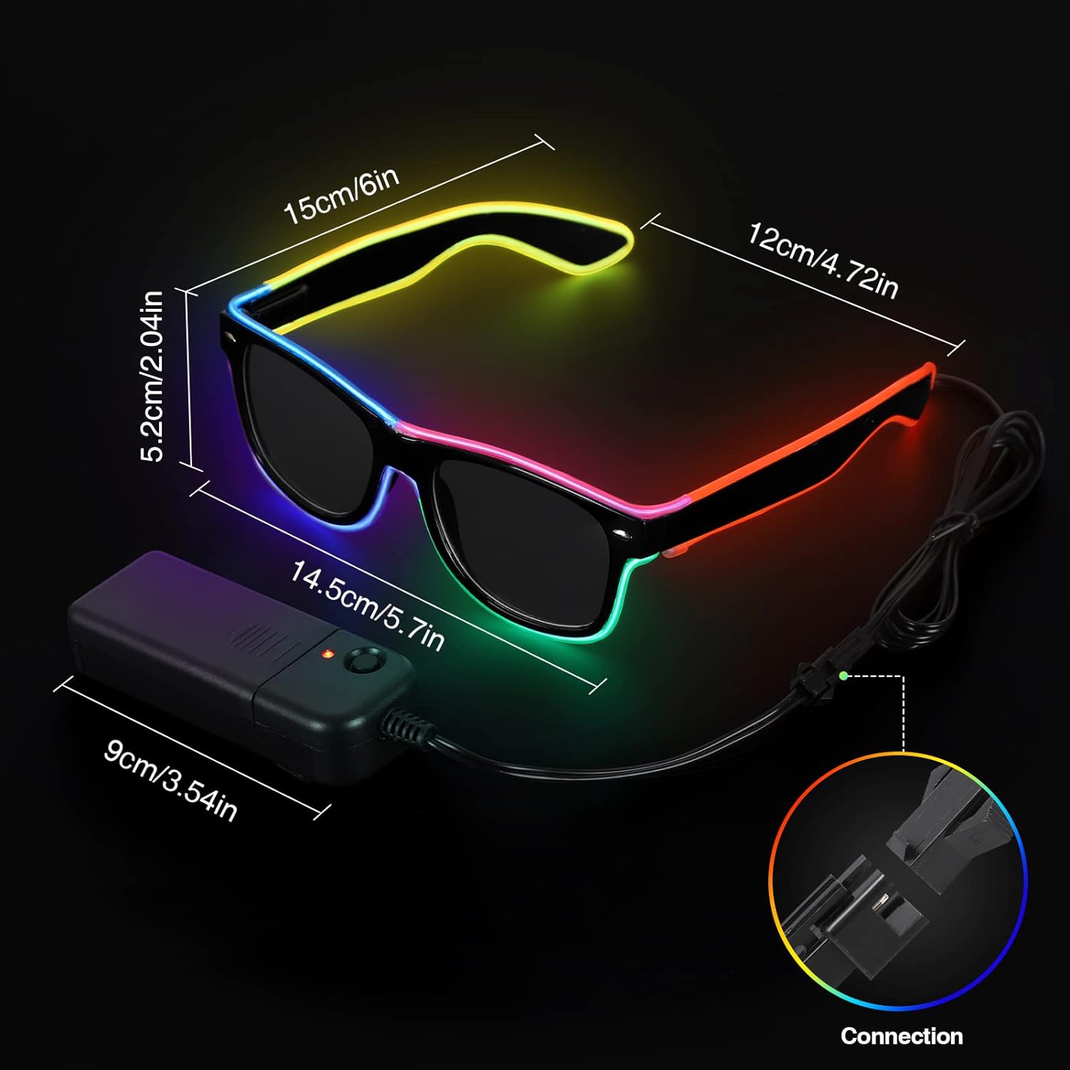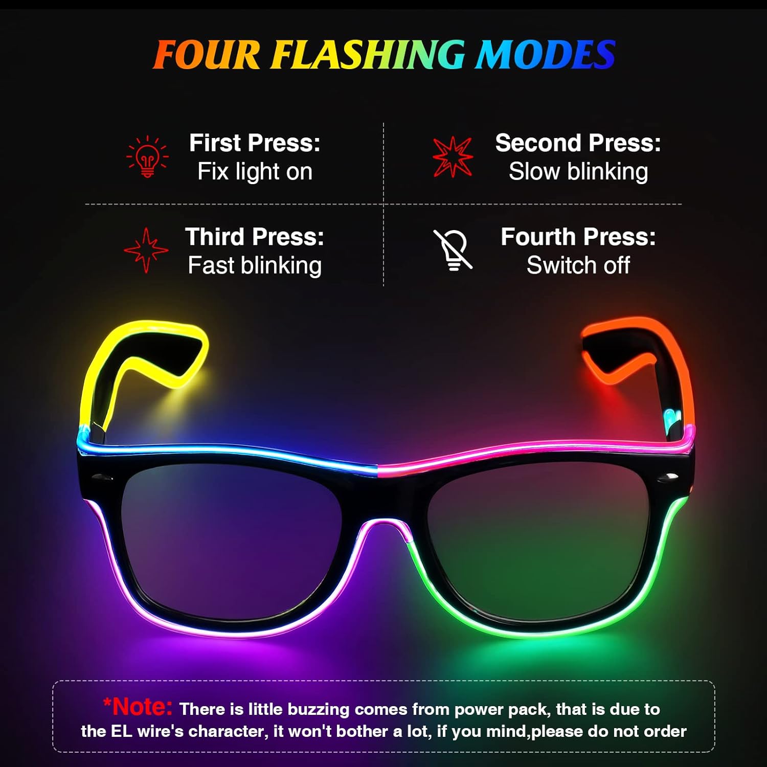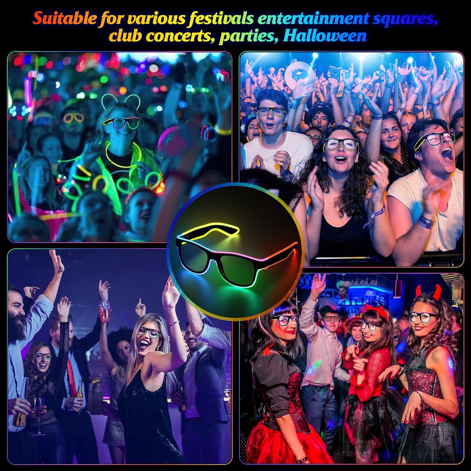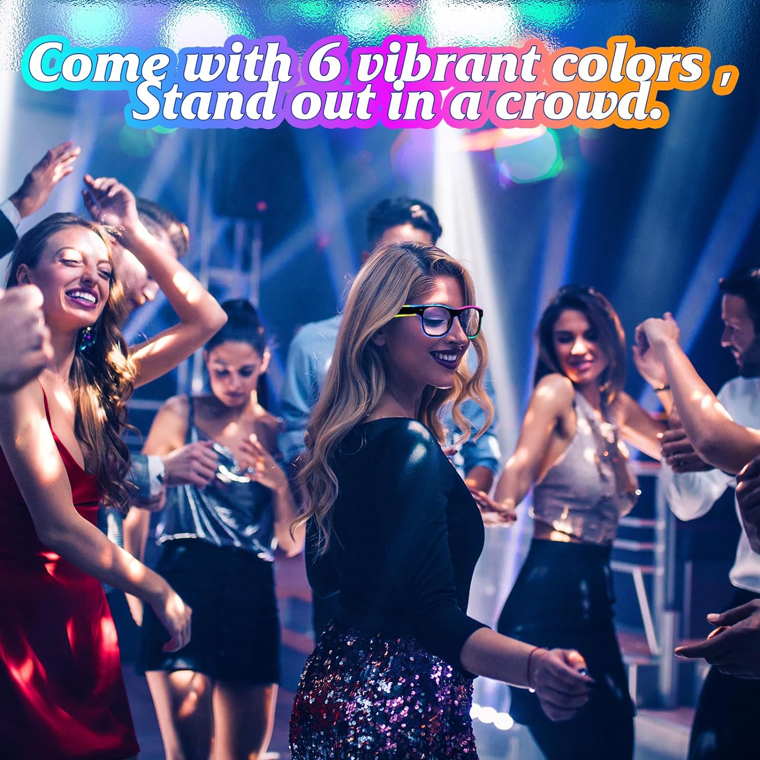 Come with 6 Colors: Unlike other rave glasses with a single glowing color, our light up glasses stands out by simultaneously showcasing 6 vibrant colors. It easily complements your outfit and makes you shine and stand out in a crowd, let our glow glasses guide you towards a path of fashion and individuality, turning you into the star of the night