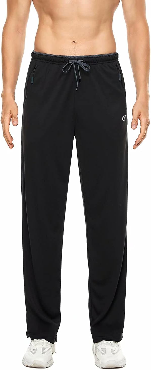 Yundobop Mens Mesh Sweatpants with Pockets Open Bottom Workout Pants for Jogging Training Athletic Yoga Casual
