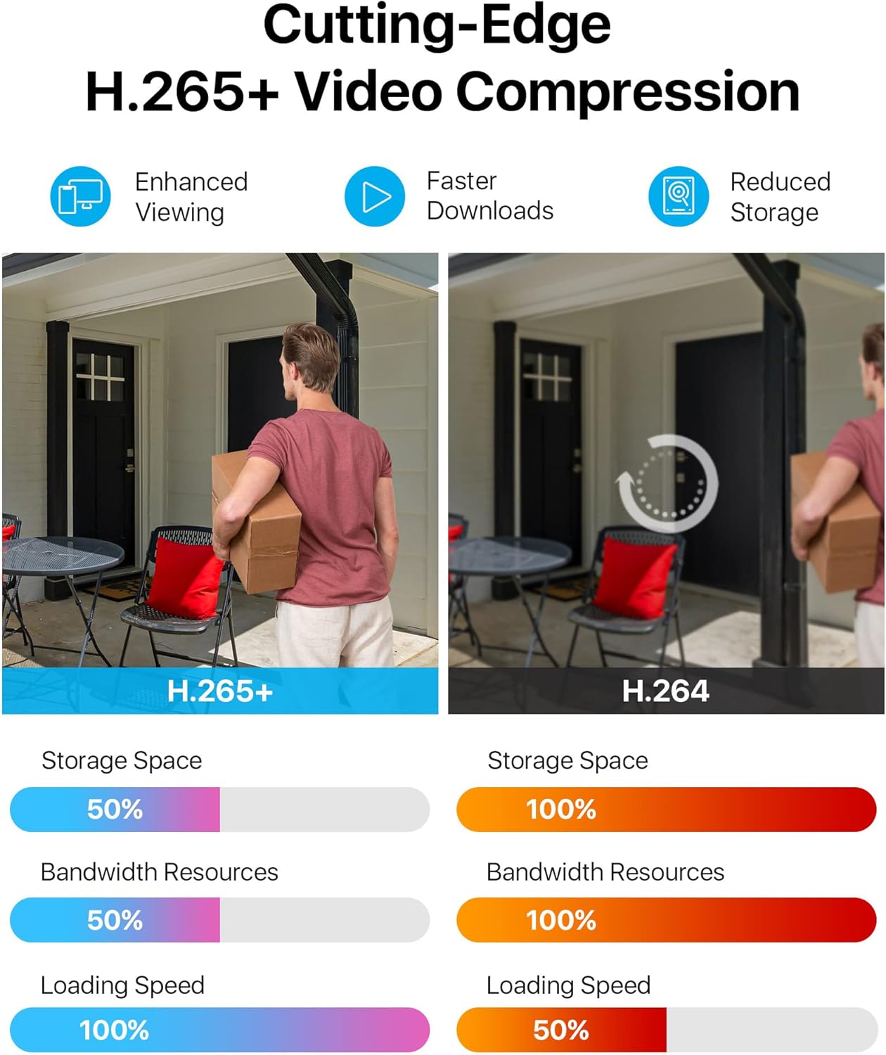 Compared to H.264, H.265+ video compression technology can save up to 50% of storage space and bandwidth resources.