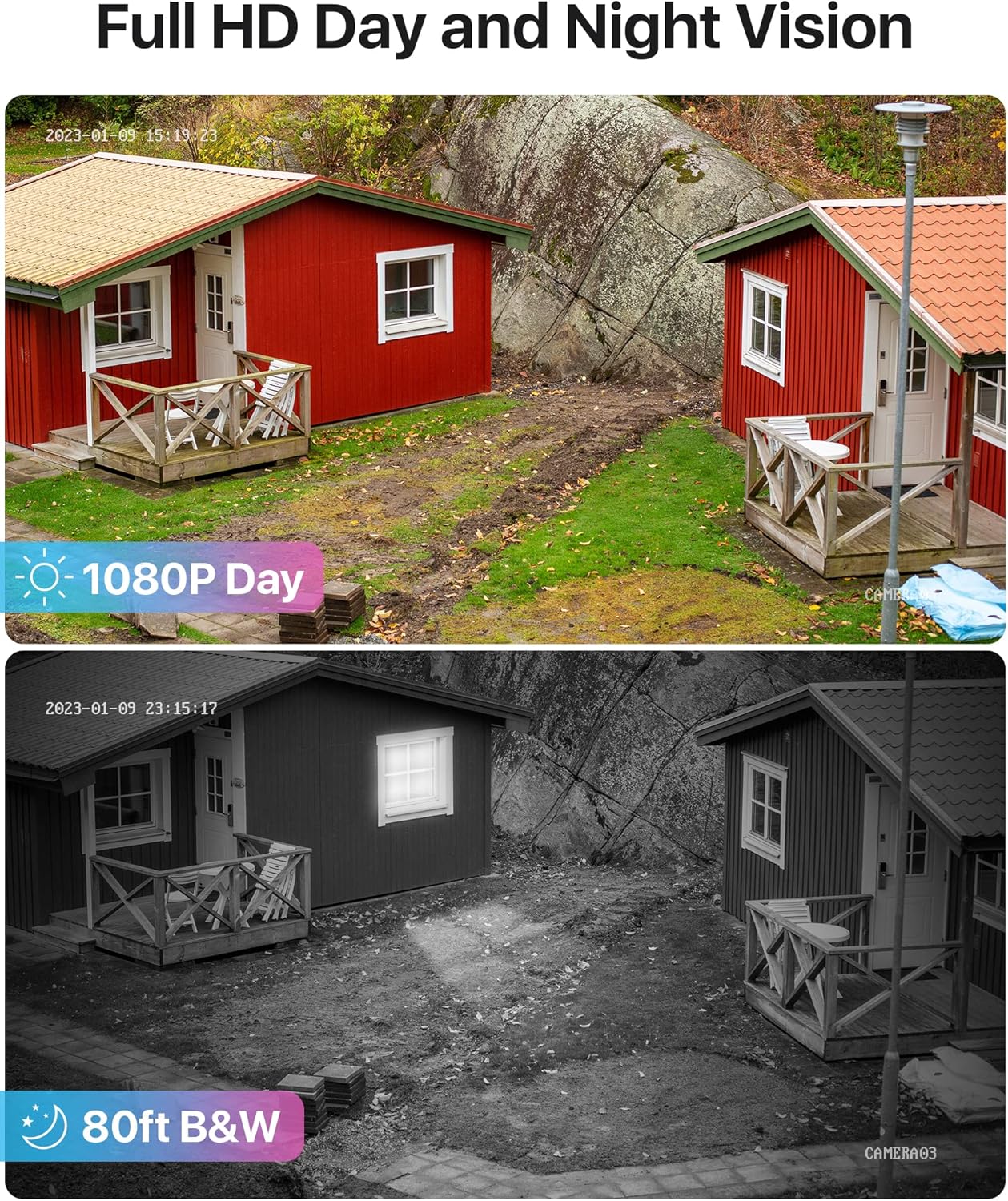 (2). [ 5MP 3K Lite Extendable System Overview ] __ Exclusive 8 Channel 5MP-Lite DVR Recorder paired with 4 Weatherproof 1080p bullet cameras with 80ft night vision and 90°view angle(It allows you to add 4 more 1080p or 5MP 12.5fps cameras). 60FT BNC+DC CCTV cabling provides both video and power to your cameras,more stable and reliable than wireless security system.(1TB security certified hard drive was pre-install inside the DVR)